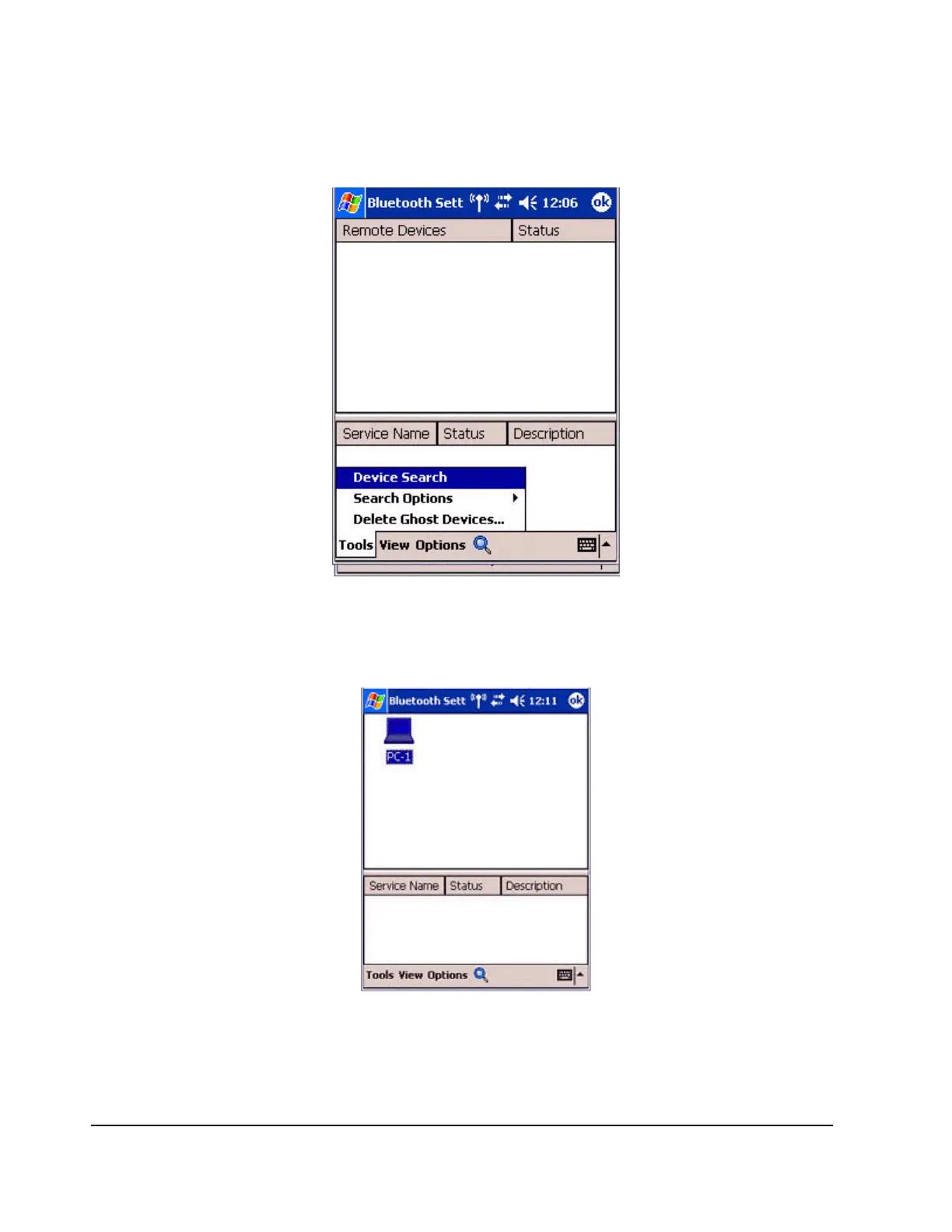 connection status will appear as list in the lower window.