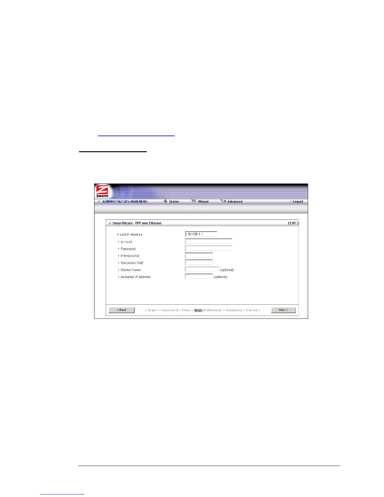 services, you should select the PPPoE button on the Select WAN Type menu. The