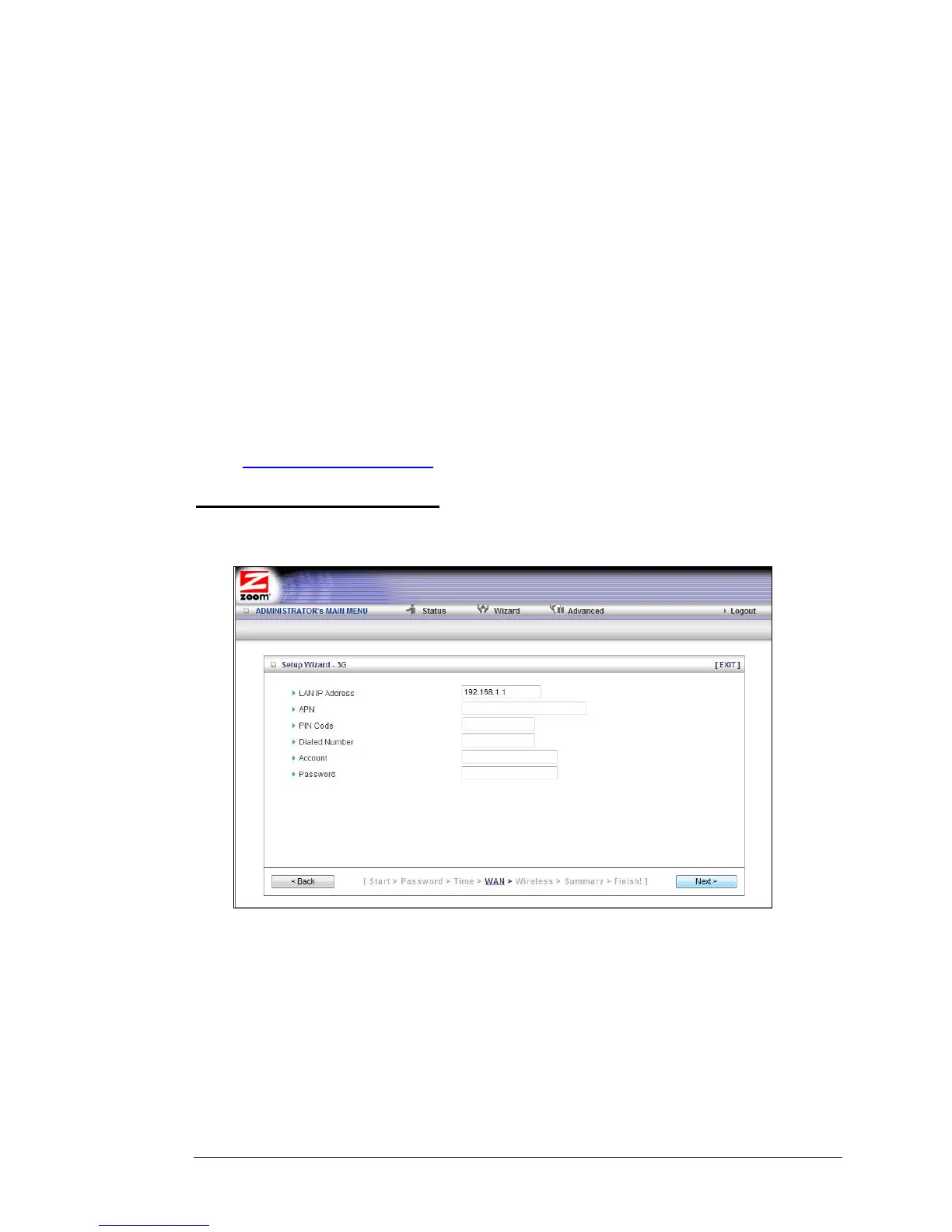 To configure your 3G modem, select the Cellular Modem button on the Select WAN Type