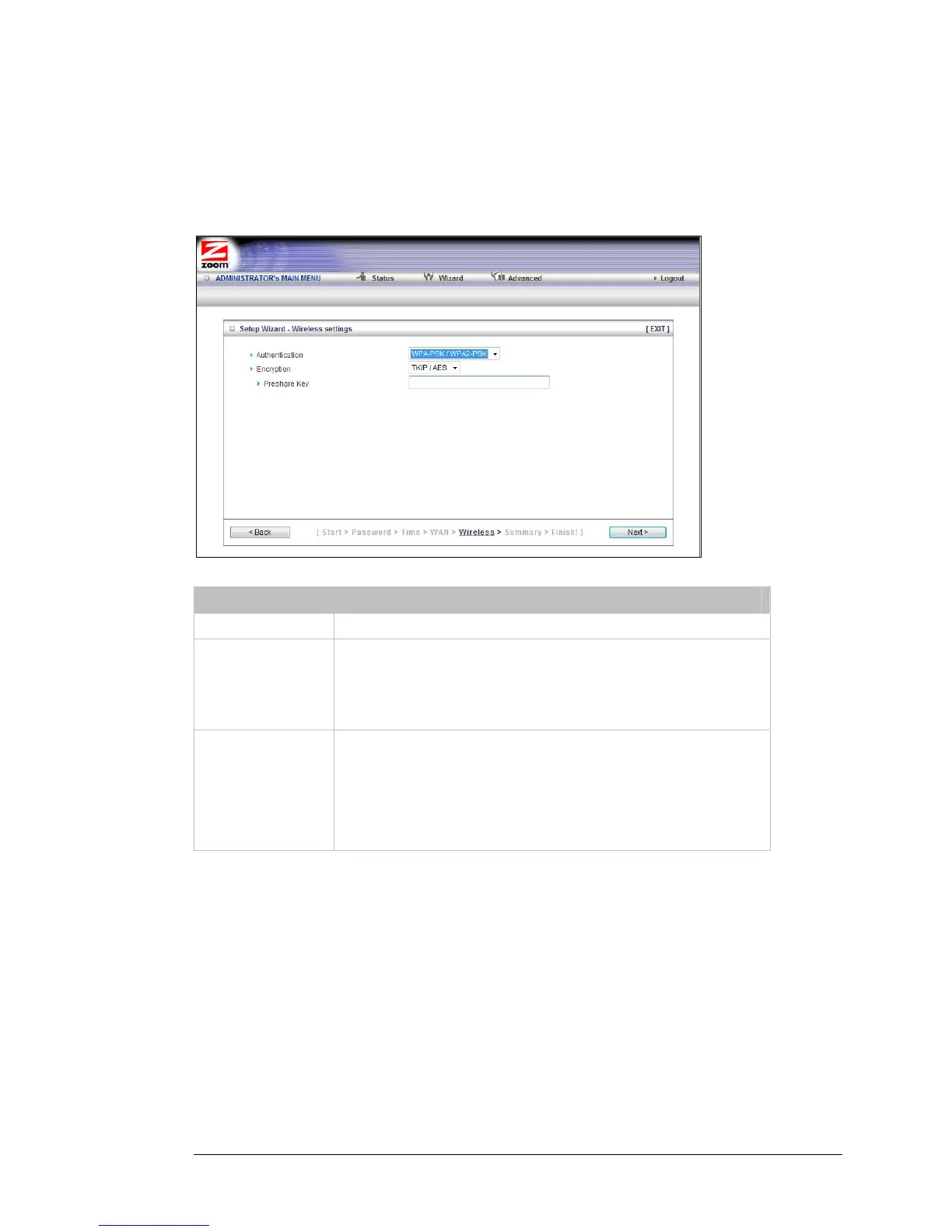 keys using TKIP or AES algorithms. Select AES if you chose WPA-PSK/
