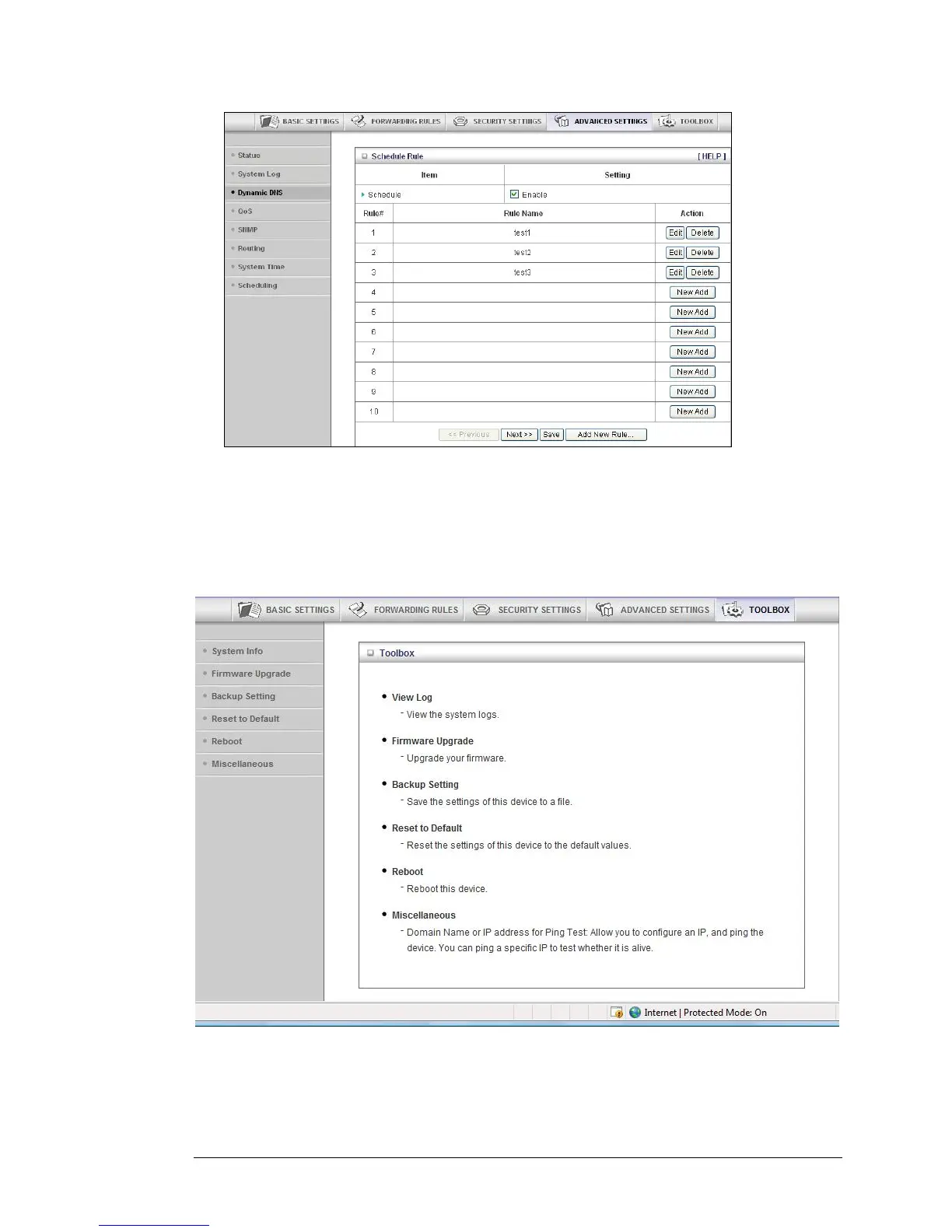 7 Click Delete to remove a scheduled rule.