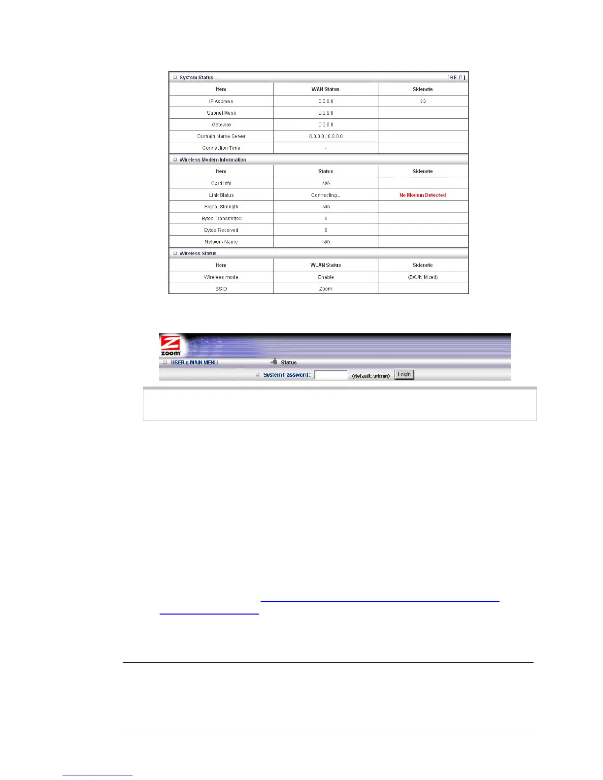 admin (the default password) in the System Password field,