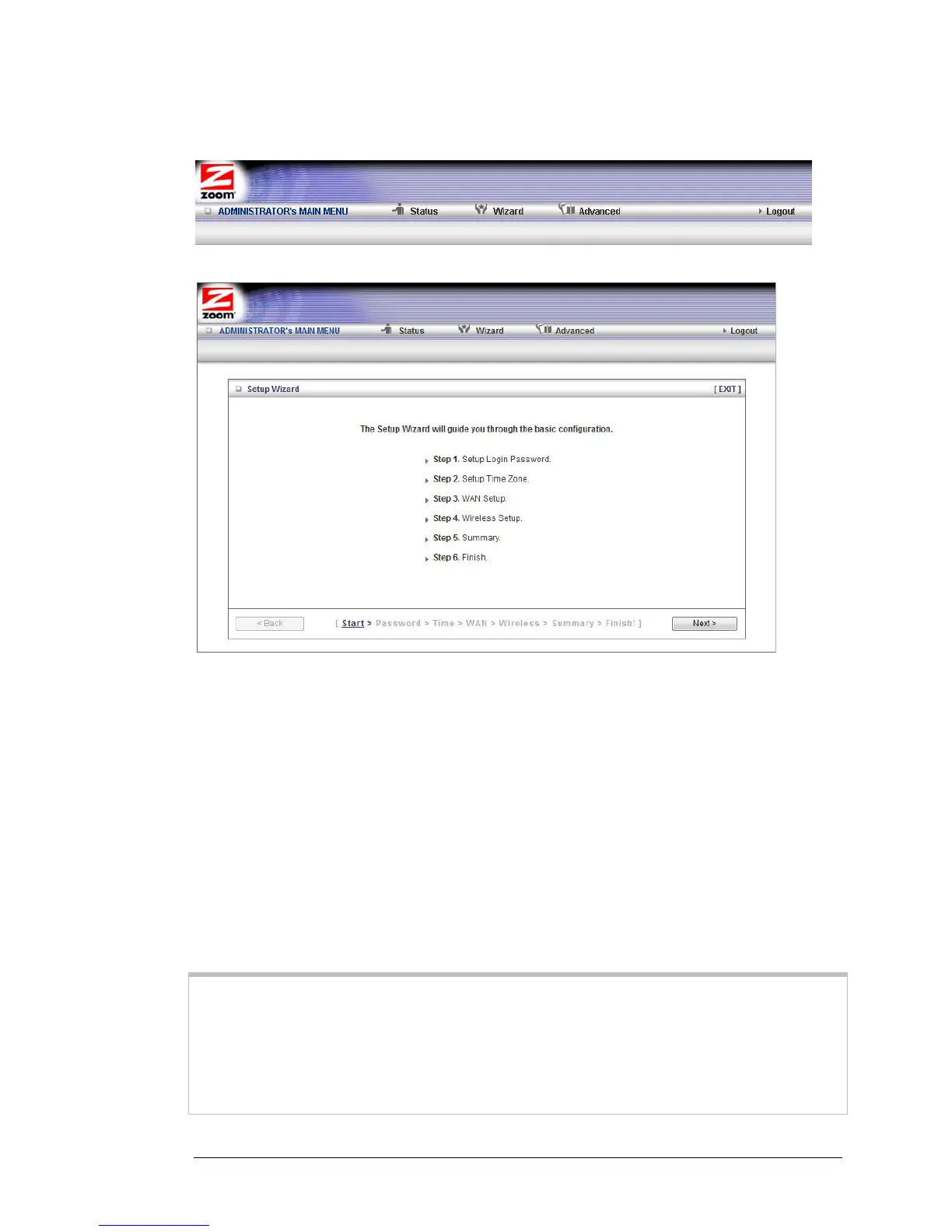 Each of the six Steps guides you in configuring a specific setting or group of settings.