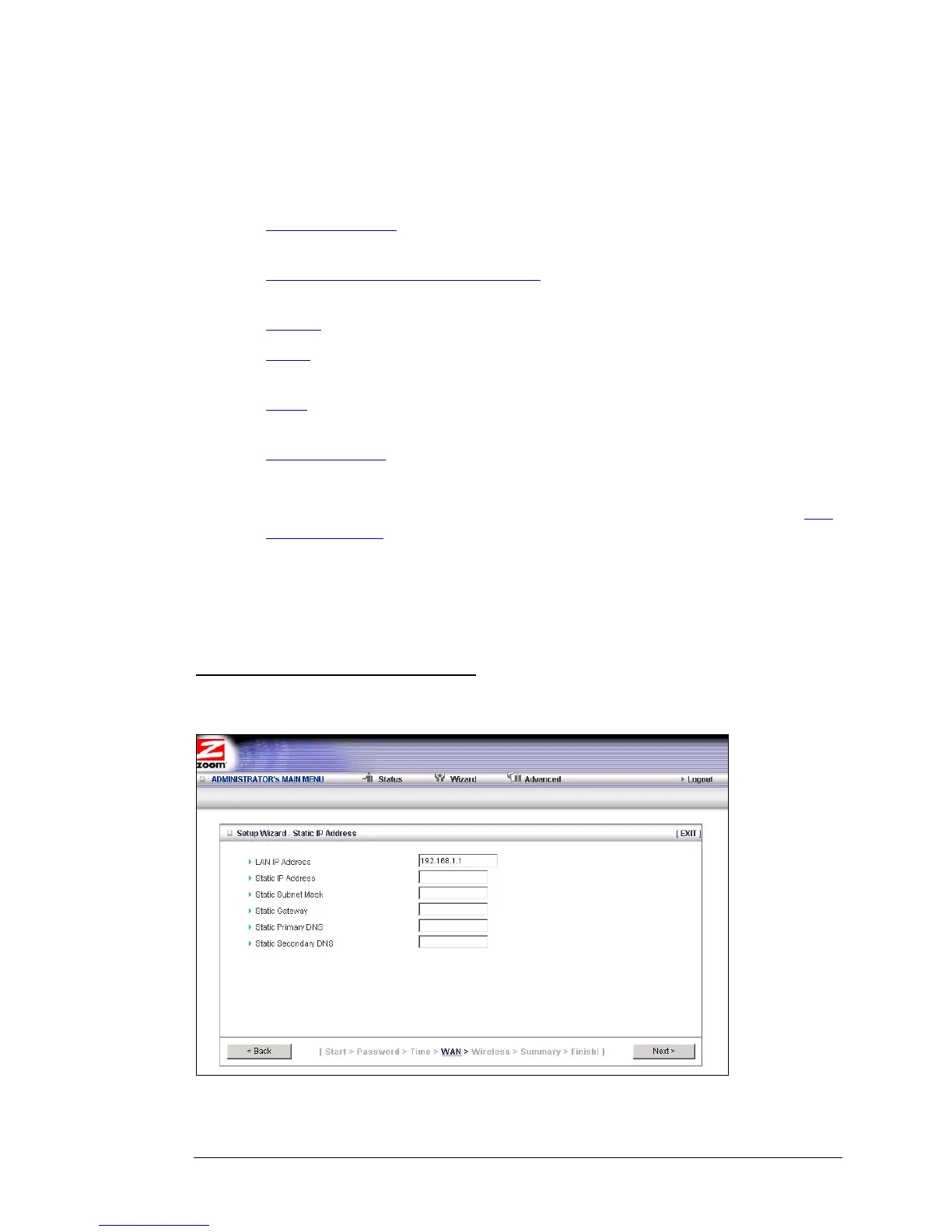 If your ISP uses Static IP addressing, select the Static IP Address button on the Select