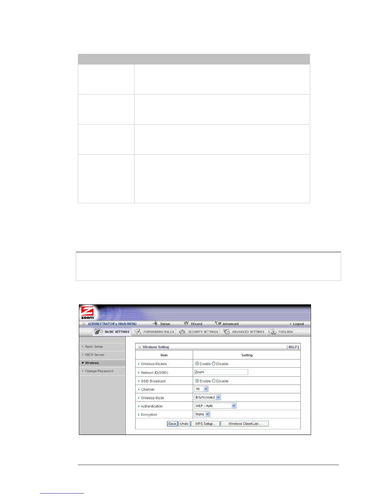 You can configure WEP encryption using the Wireless Setting Page of the Configuration