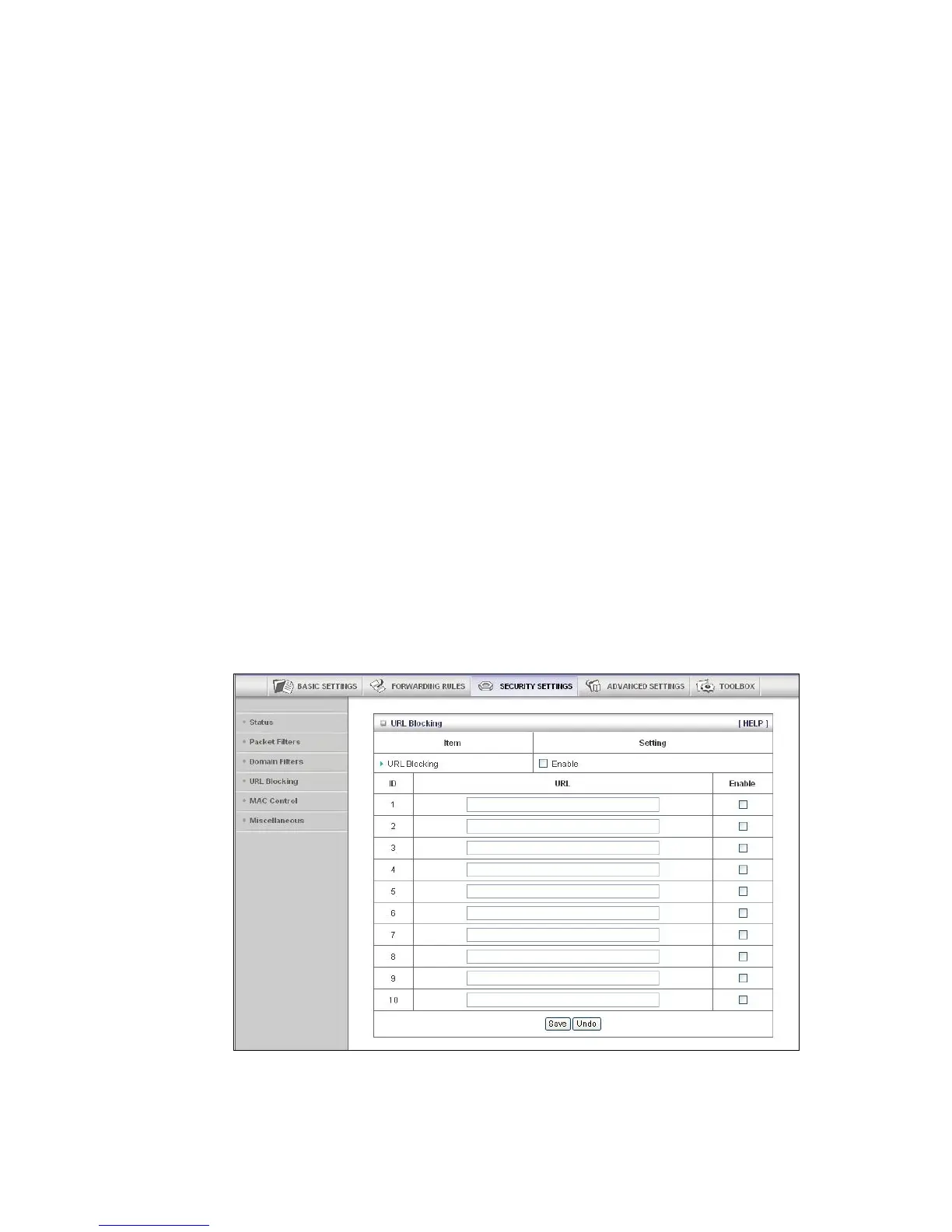 • URL Blocking Enable