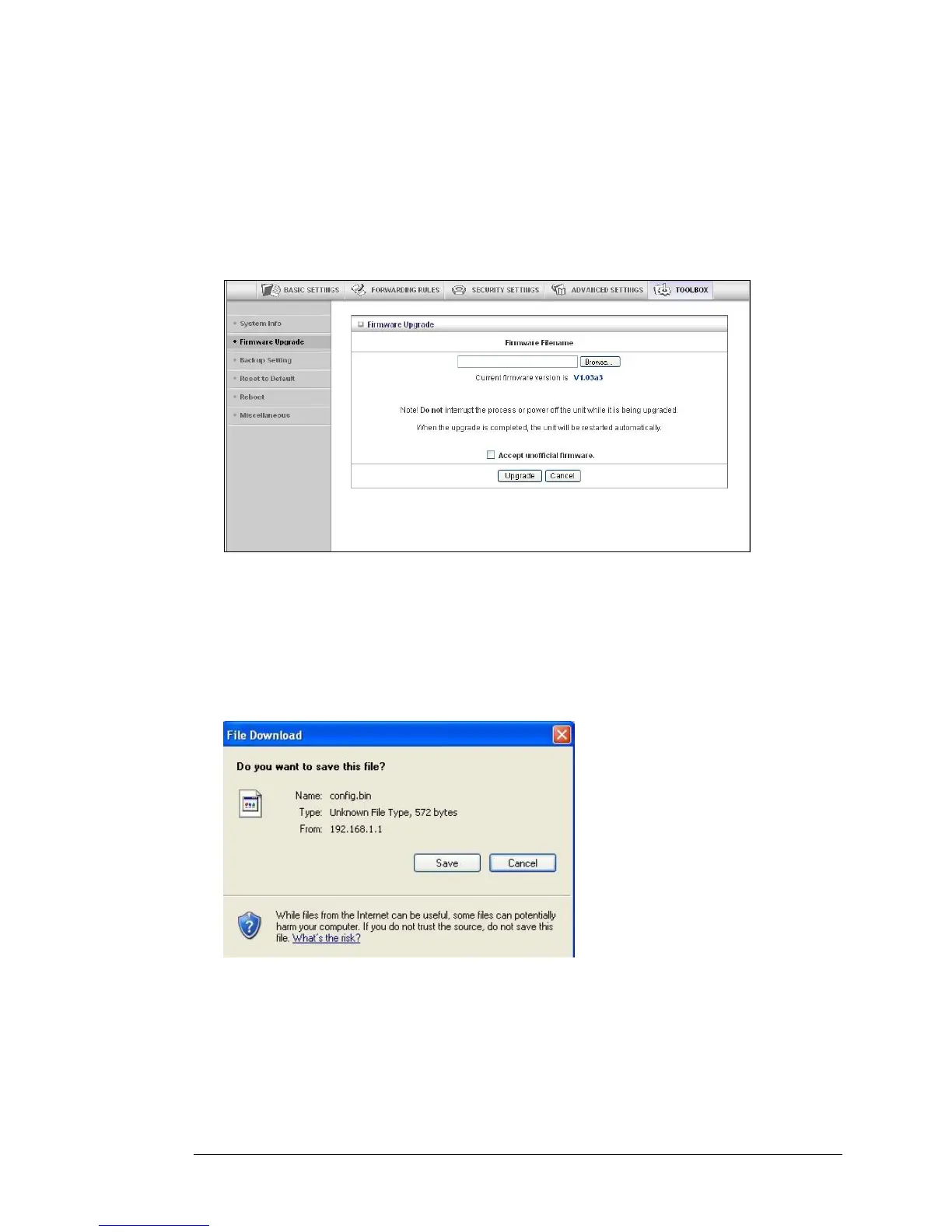 The Firmware Upgrade Page
