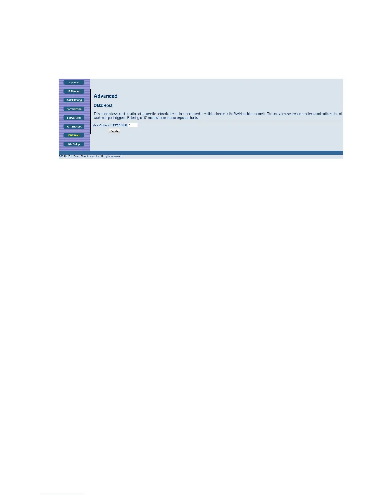 Note: If a specific PC is set as a DMZ Host, remember to set this back to “0” when finished with