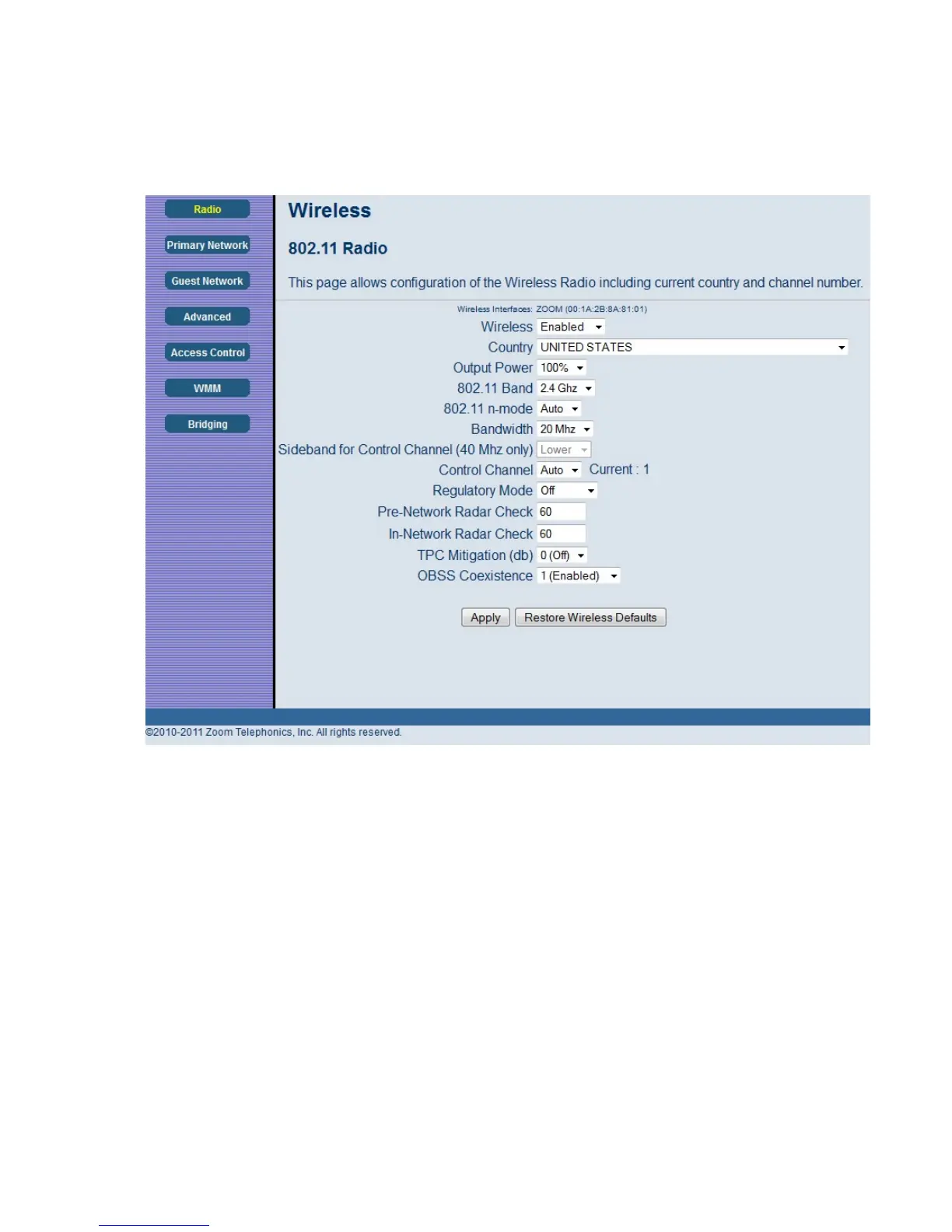 Figure 29. Example of Radio Page