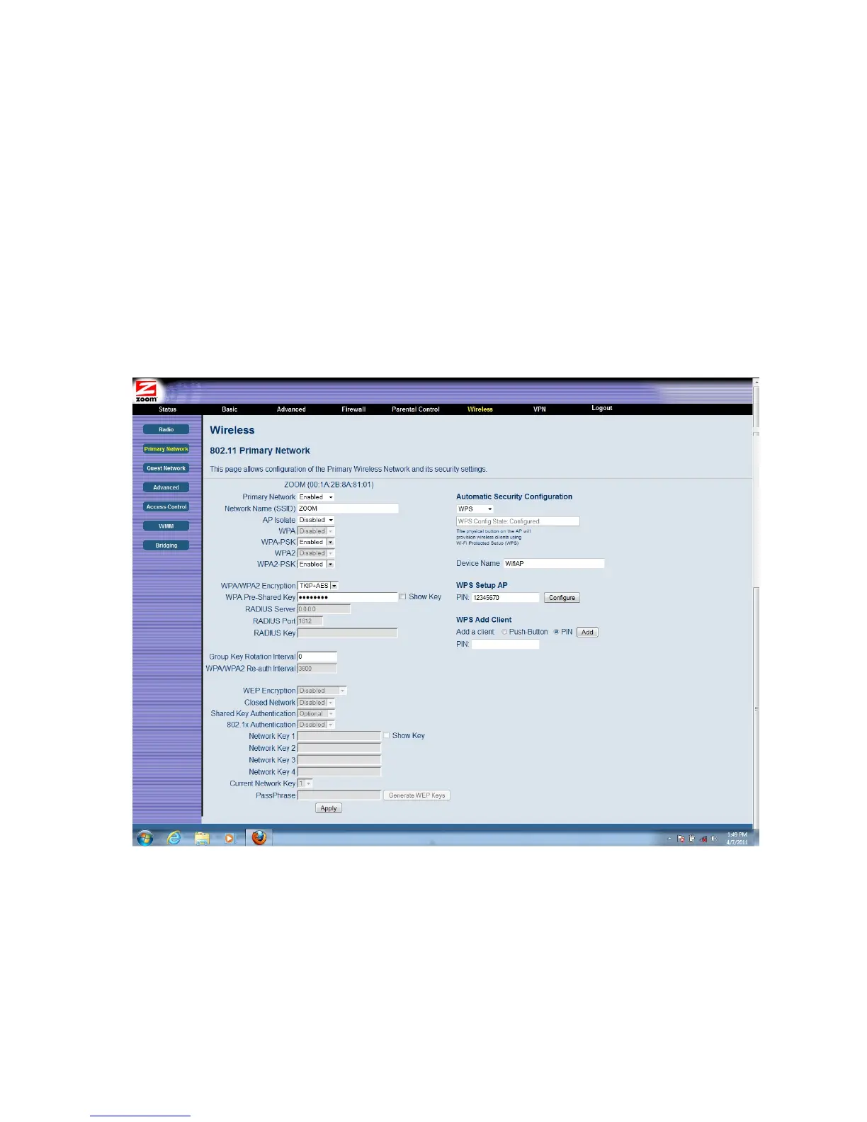 2 Then click the Primary Network submenu.