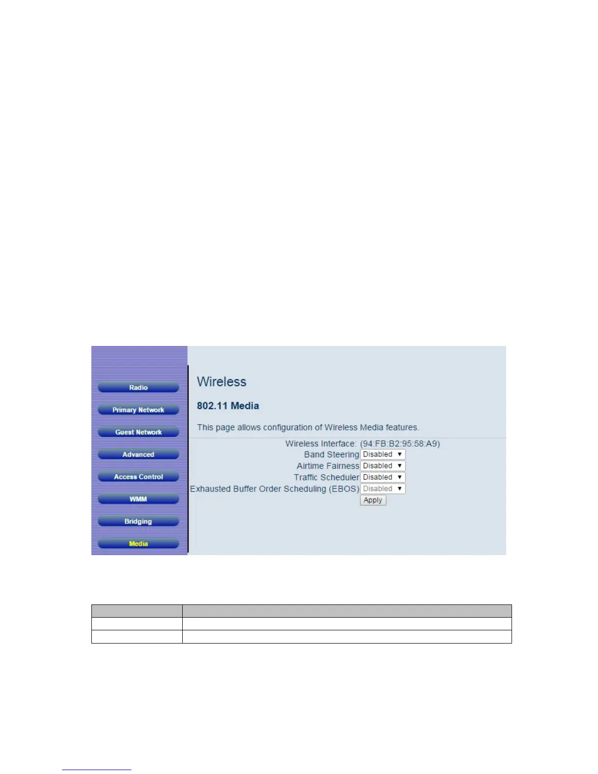 Table 32. Media Options