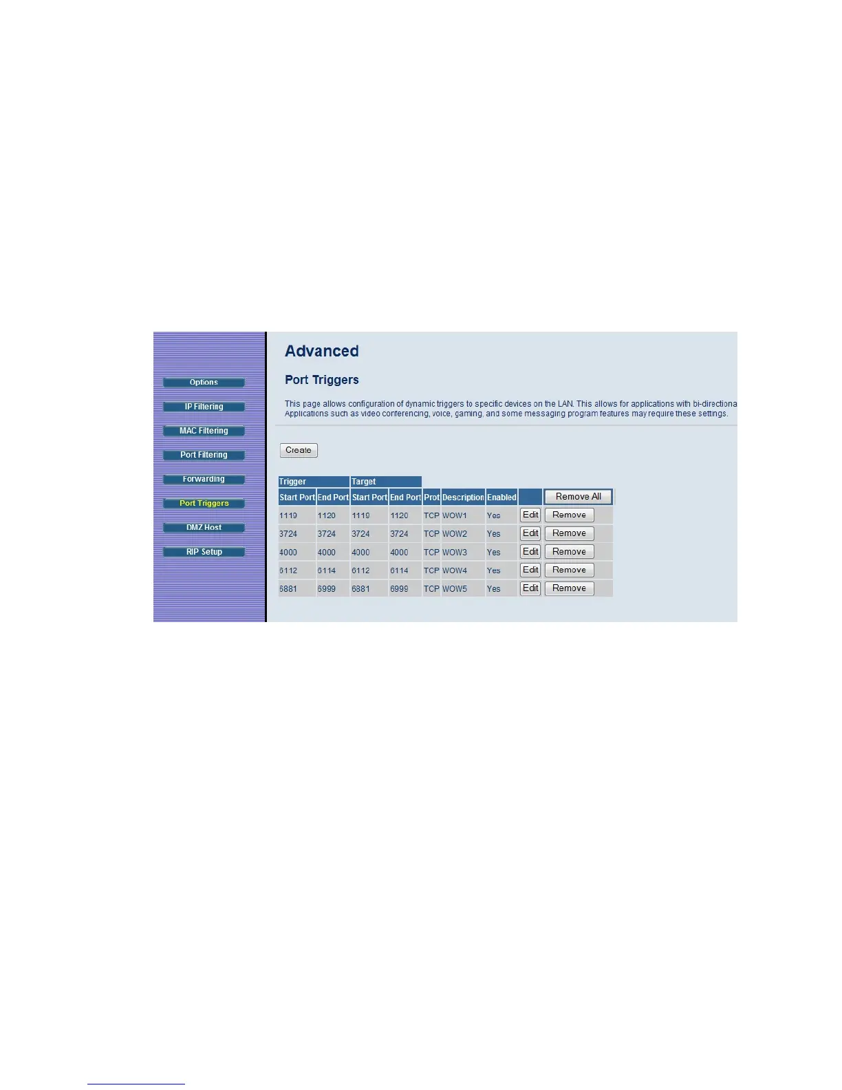 on the port triggering page, check to see if you have a firewall running on your