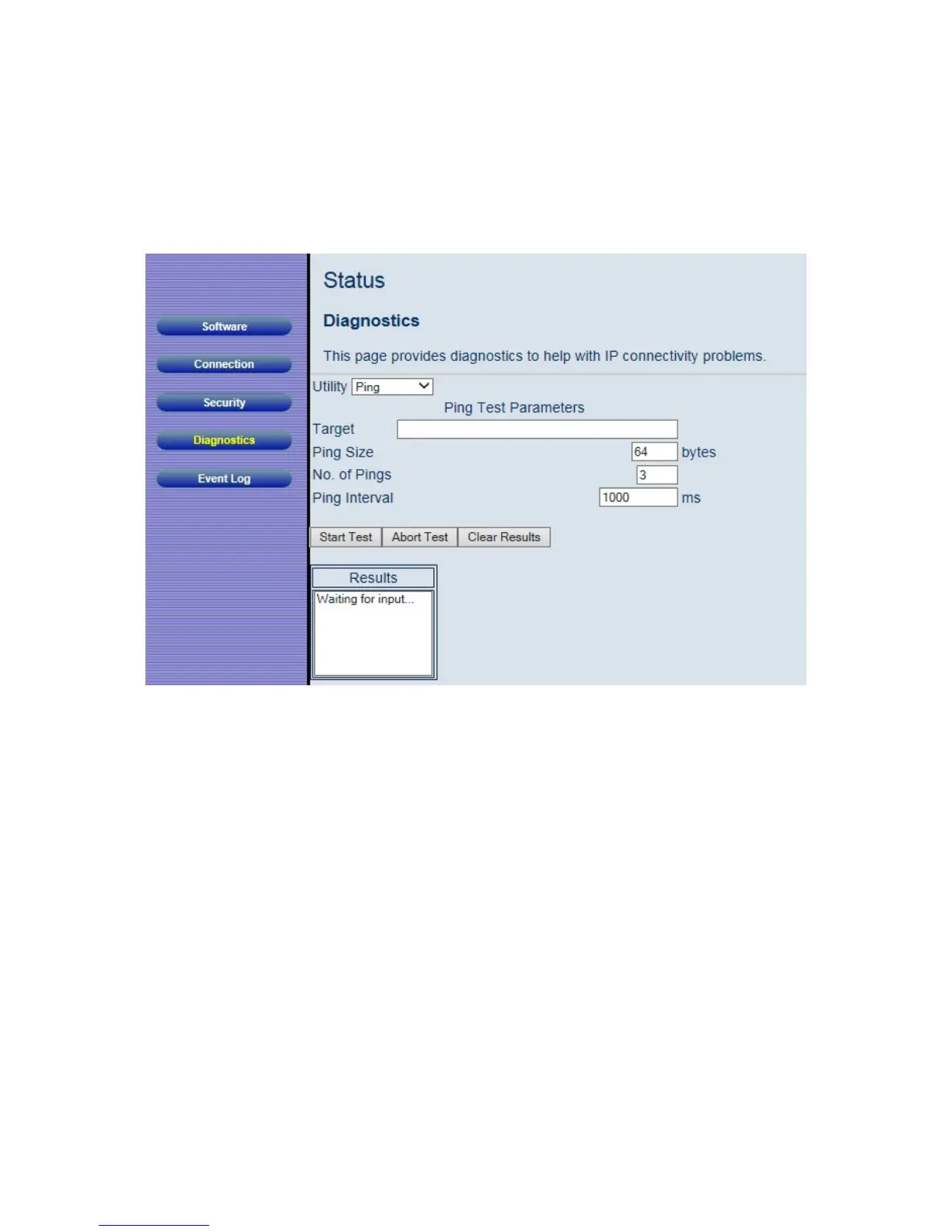 Figure 7. Example of Diagnostics - Ping Page