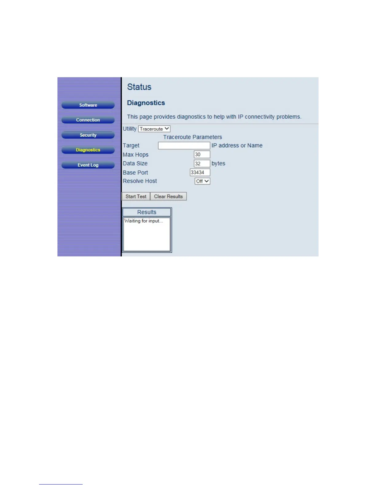 Figure 8. Example of Diagnostics - Traceroute Page