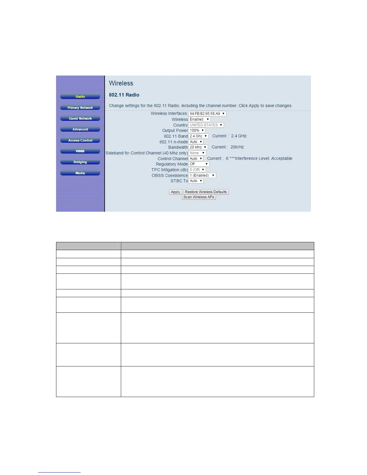 802.11n mode is configured as Automatic and the Control