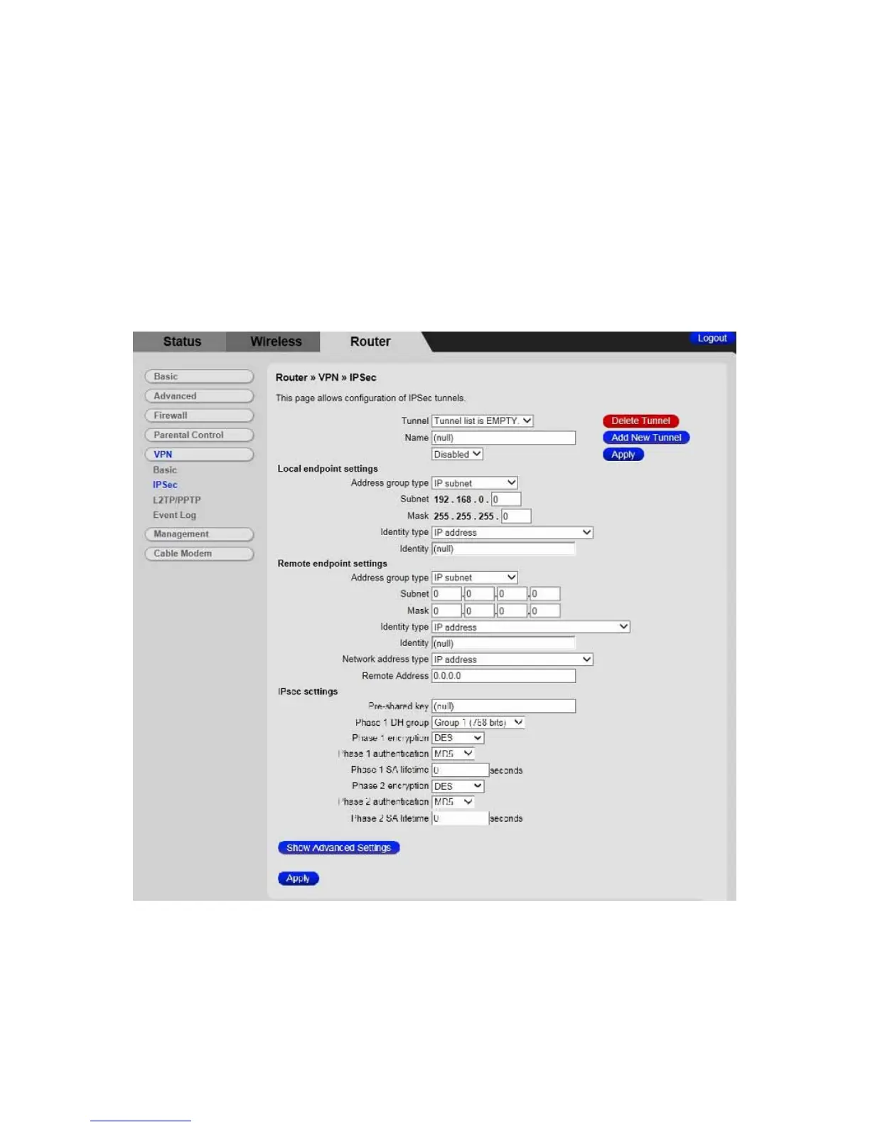 To access the IPSec page: