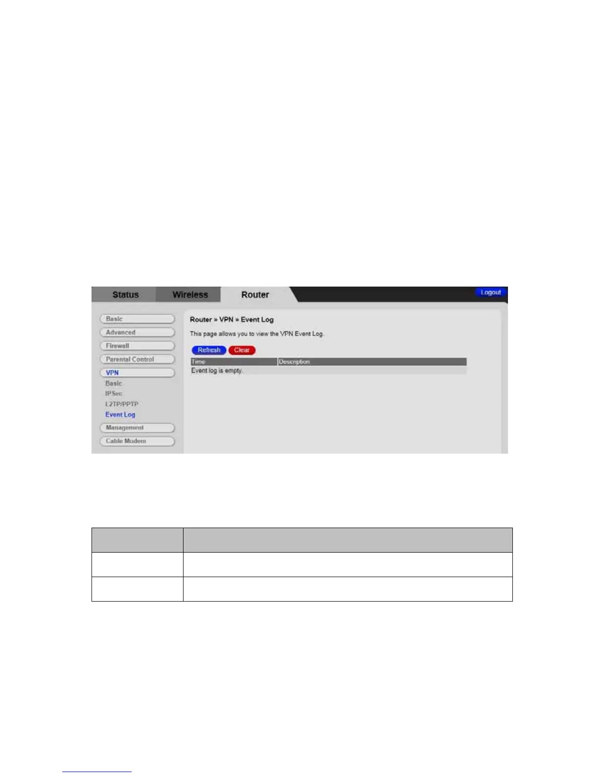 2 Then click the VPN /Event Log submenu.