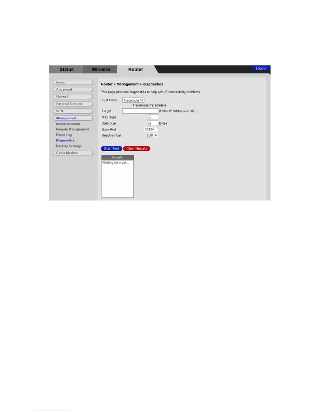 Figure 39. Example of Diagnostics - Traceroute Page