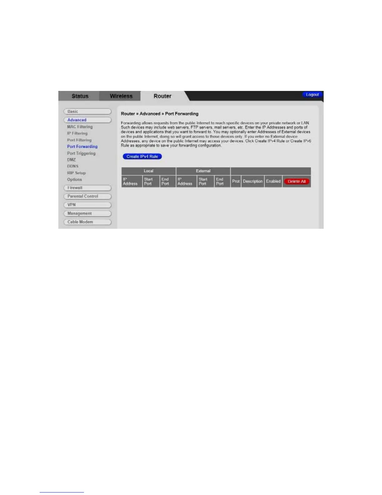 Figure 19. Example of the Port Forwarding Page