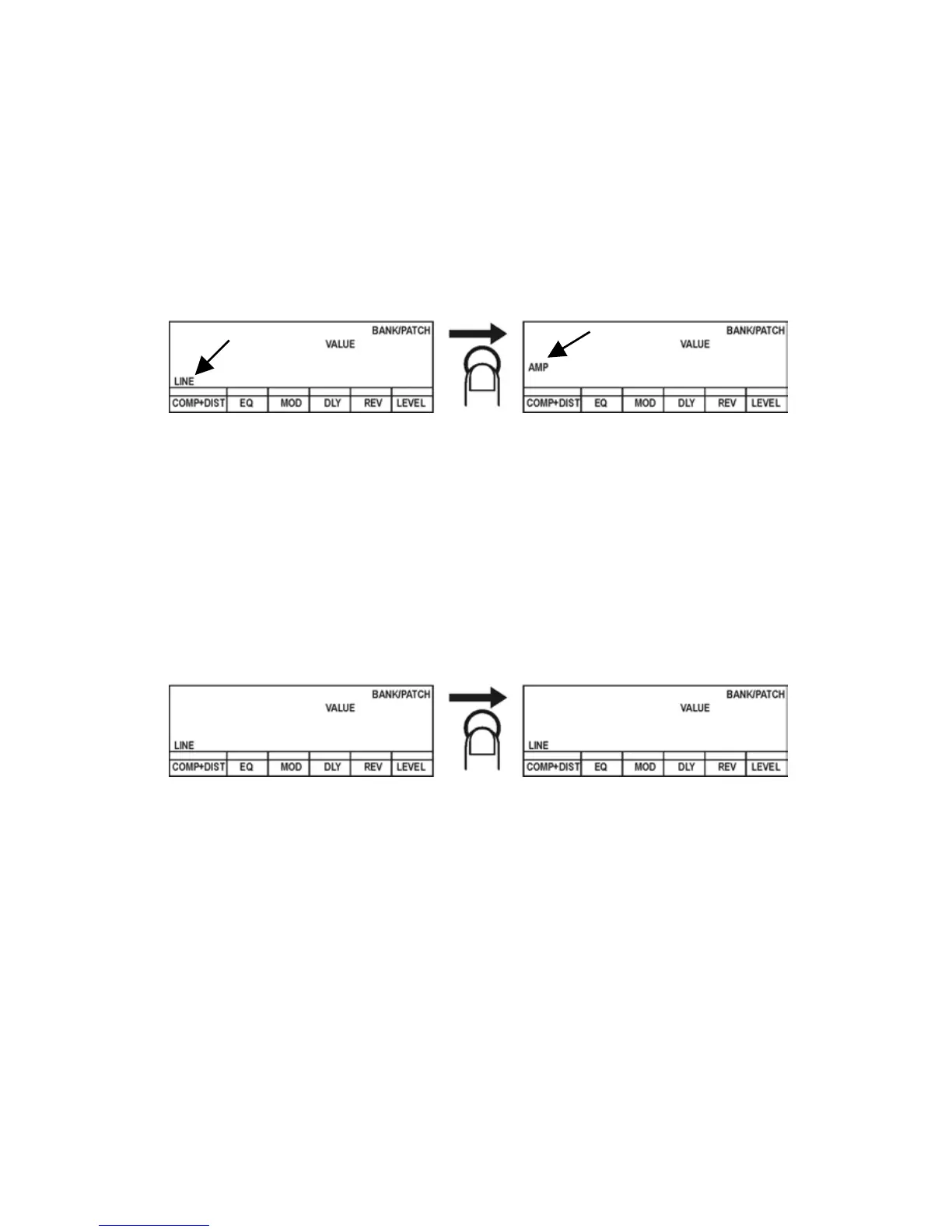 Every time you press the AMP/LINE key, “LINE” and “AMP” on the display switches