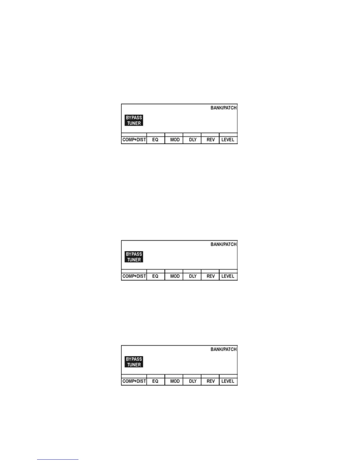 · In the Play mode, press the BYPASS/Tuner key.