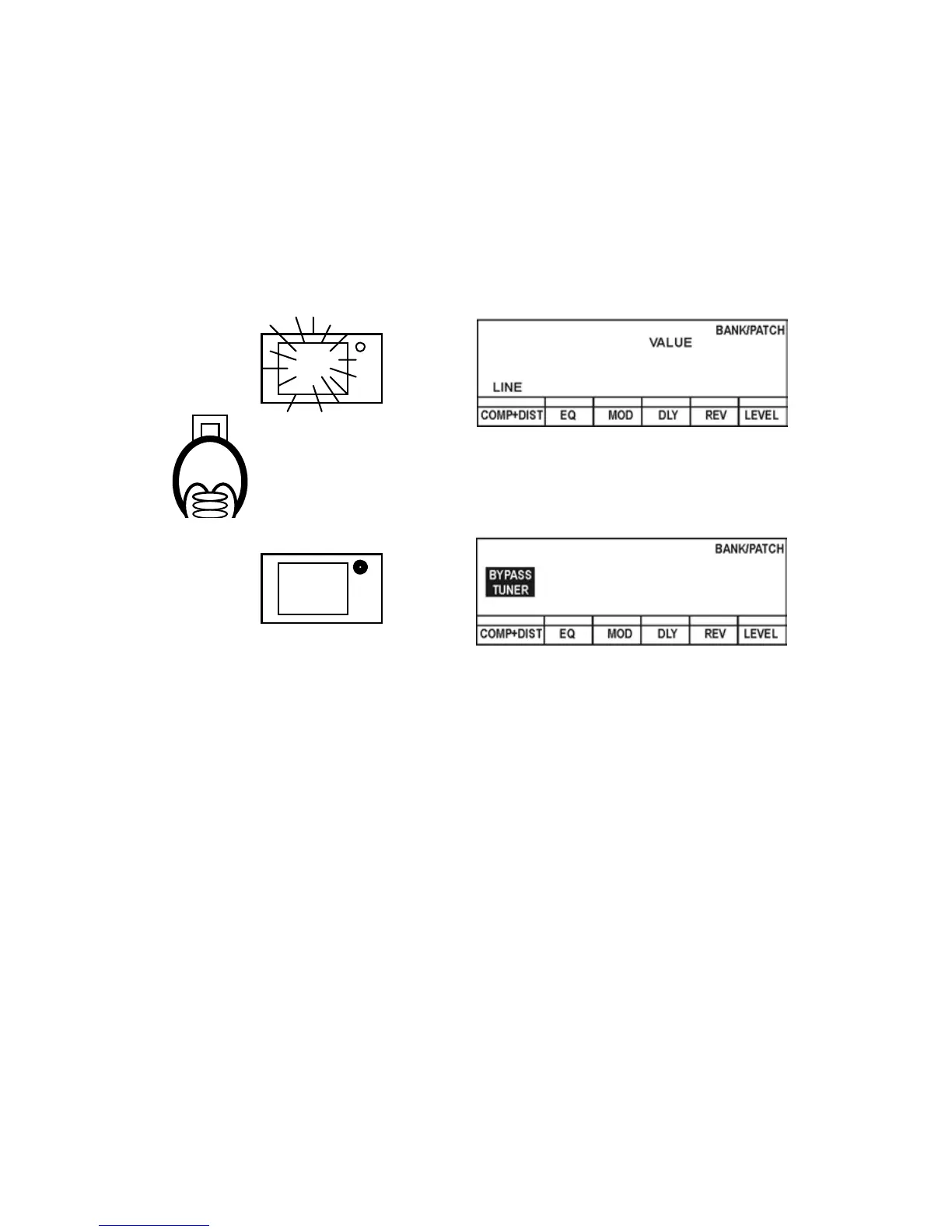 Patches and on/off status of the Bypass function are disabled.