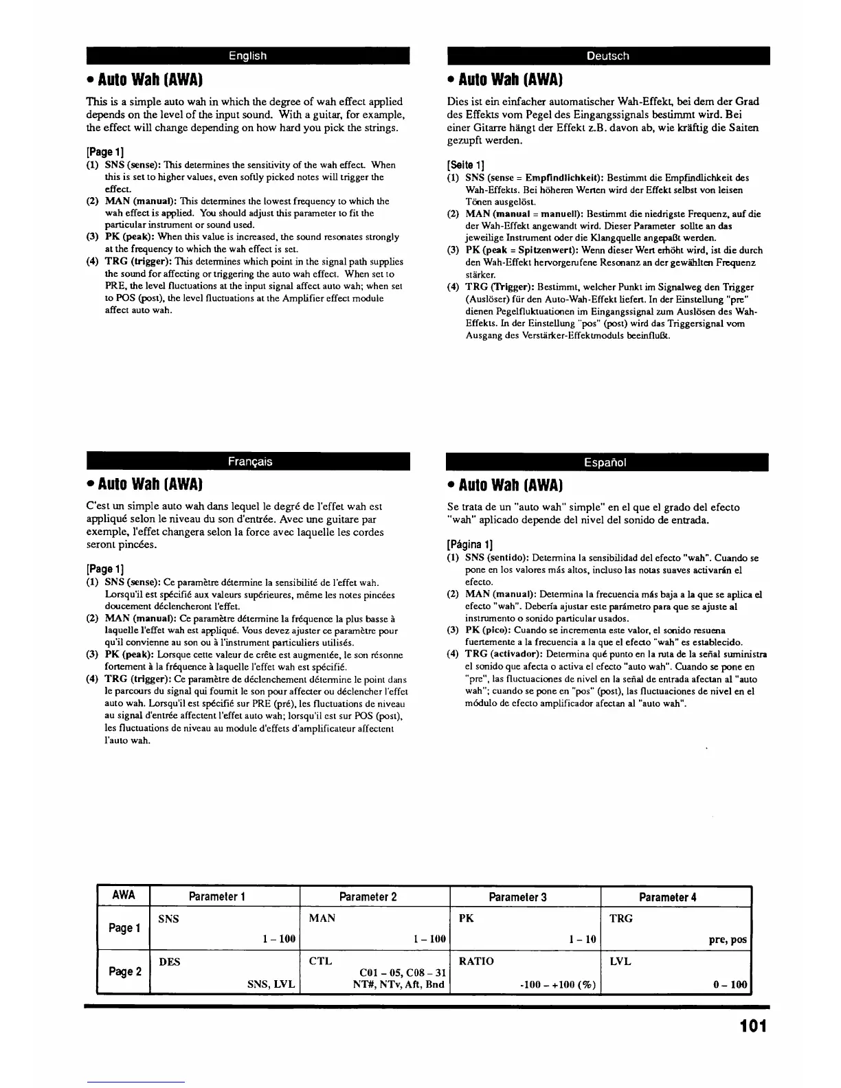 (1) SNS (sense): Ce paramitre dttermine la sensibilitk de l'effet wah.