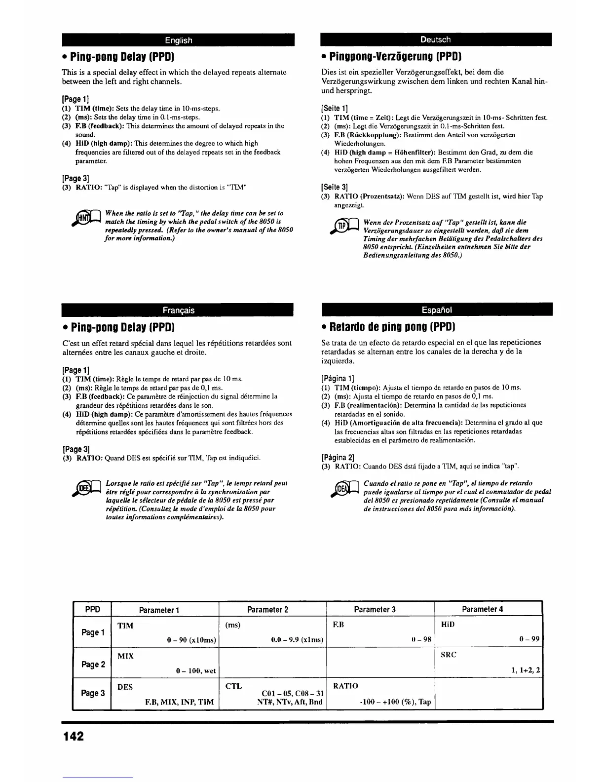 Cuando el ratio se pone en "Tap", el tiempo de retardo