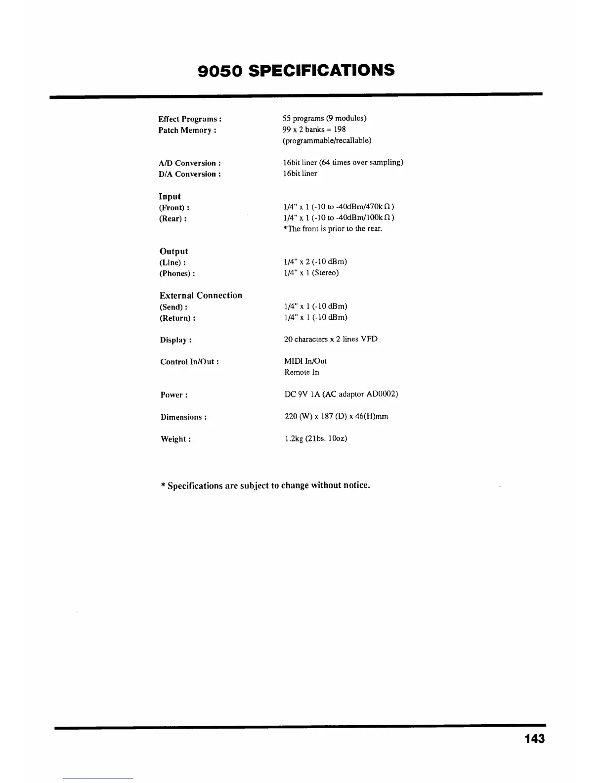 Zoom 9050 - 9050 SPECIFICATIONS