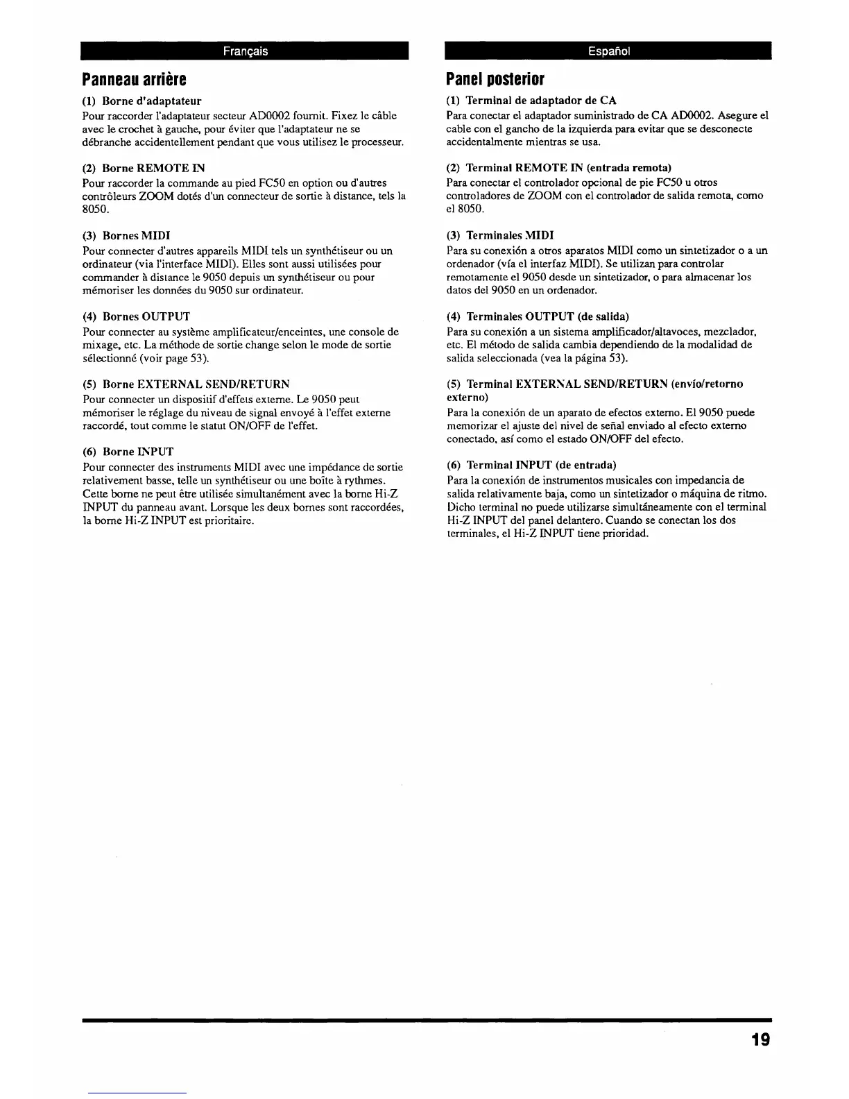 Para la conexi6n de un aparato de efectos externo. El 9050 puede