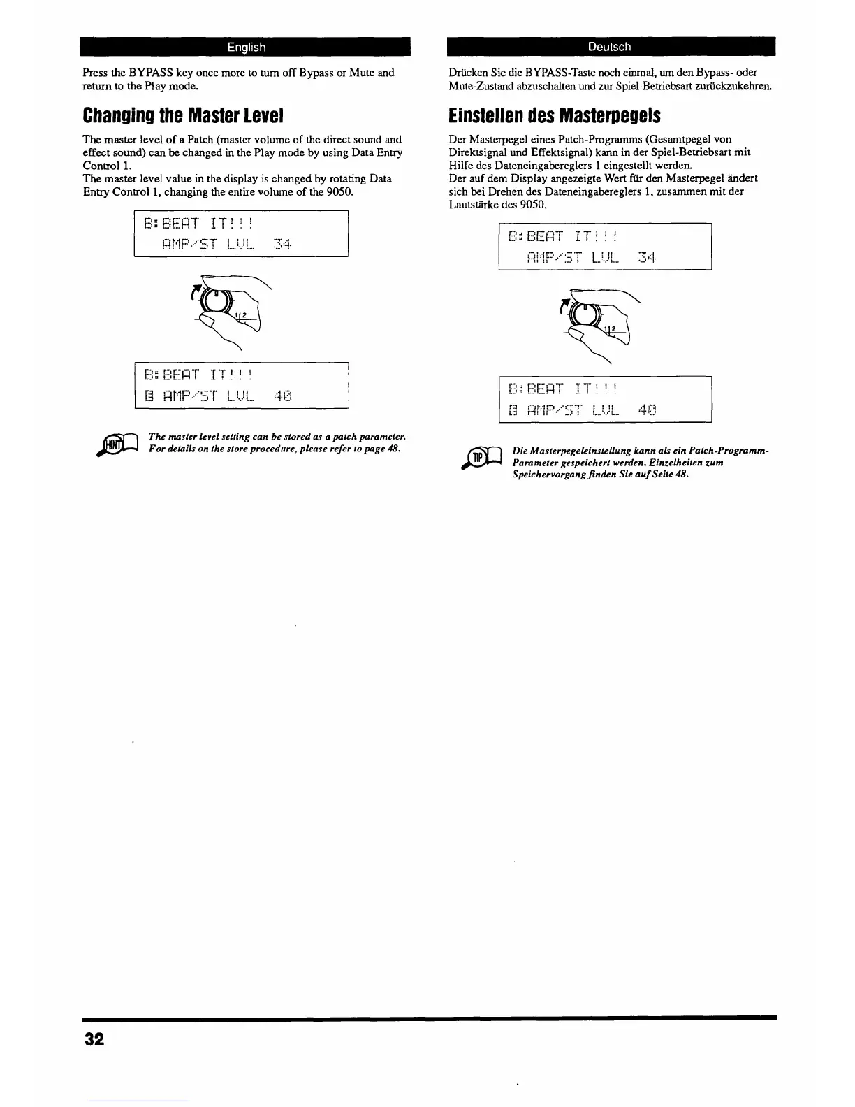 Direktsignal und Effektsignal) kann in der Spiel-Betriebsart