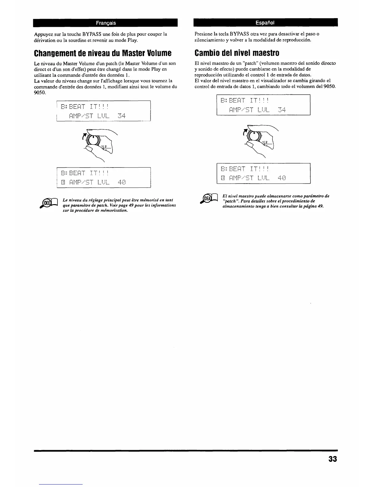 direct et d'un son d'effet) peut iiue chang6 dam le mode Play en