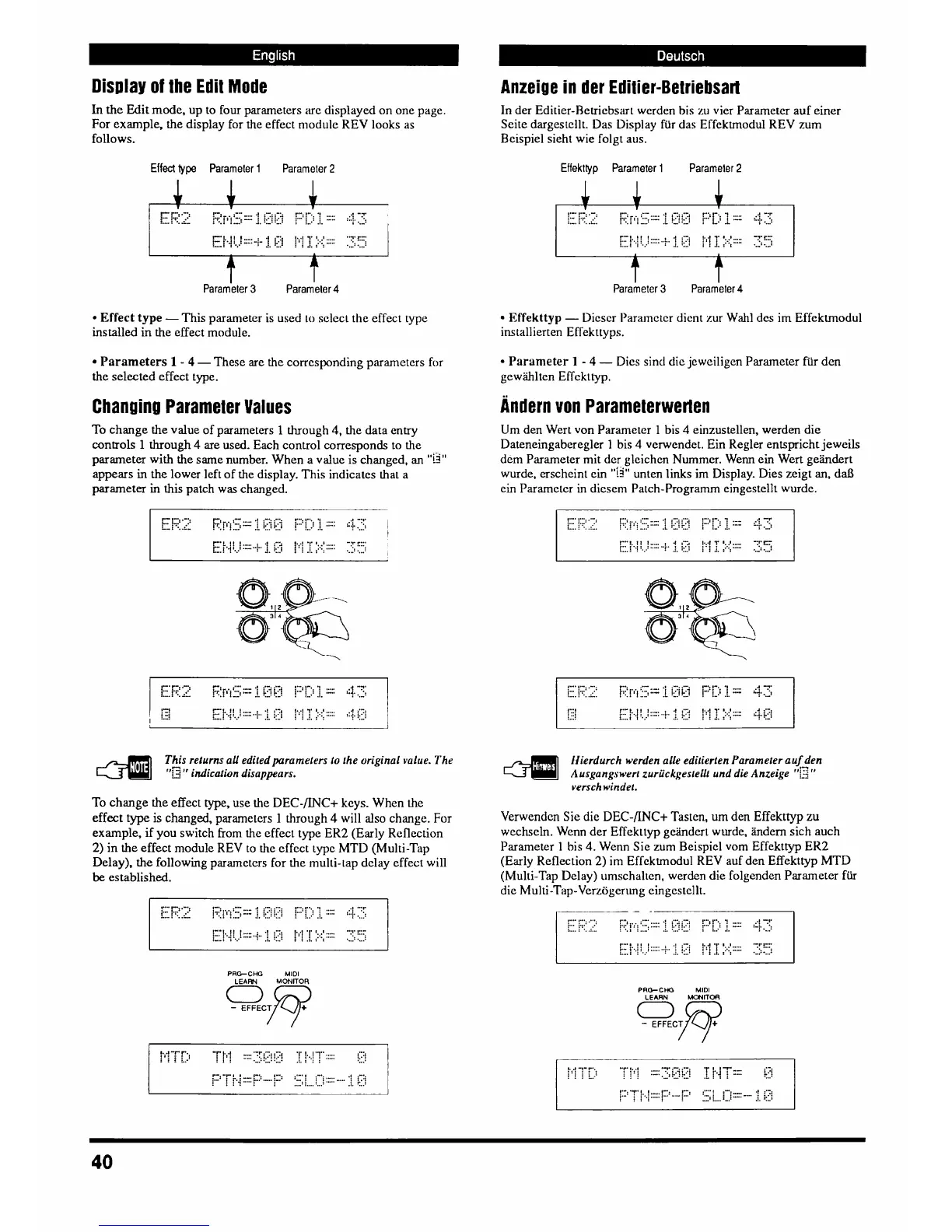 Seite dargestcllt. Das Display far das Effektmodul REV mm