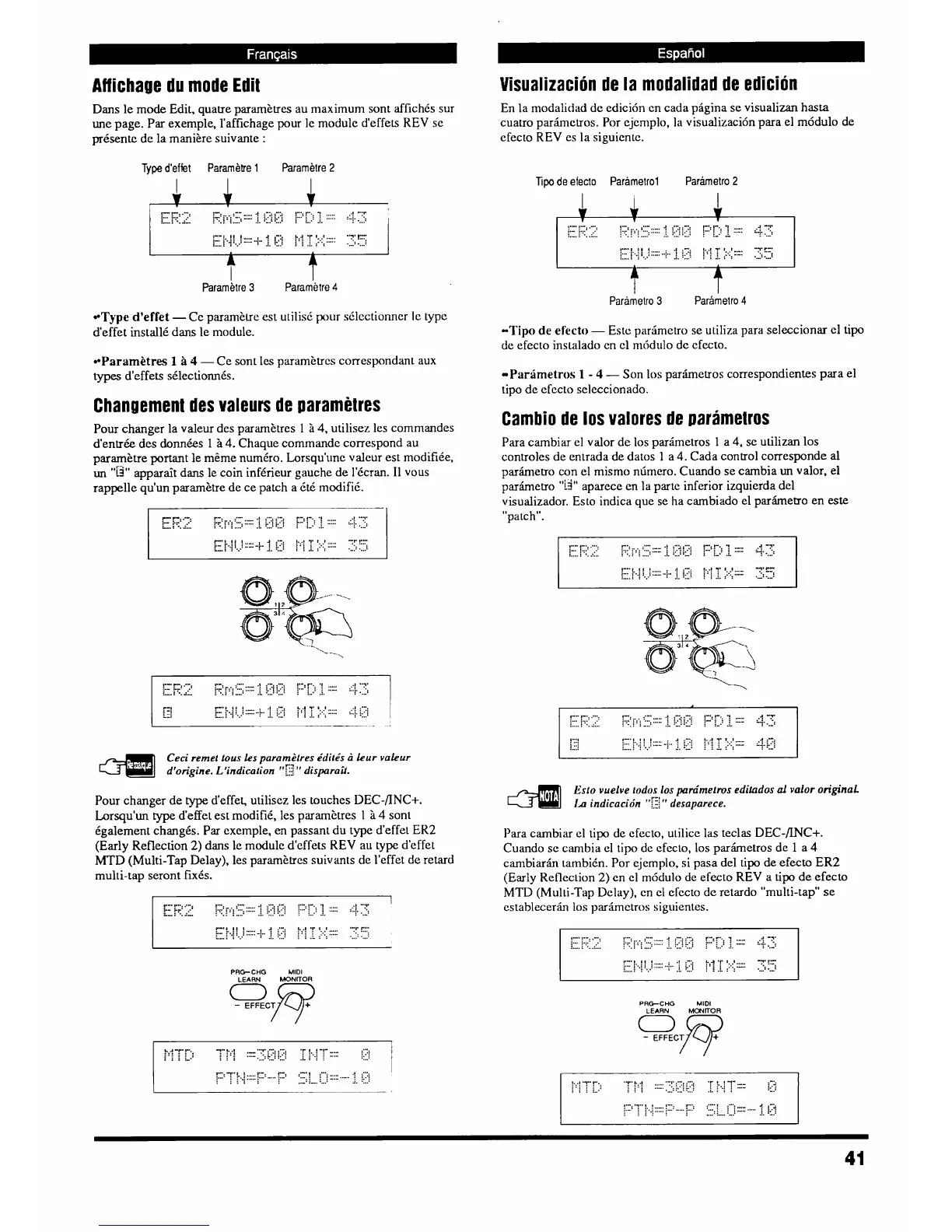 d'effet, utilisez les touches DEC-/INC+.