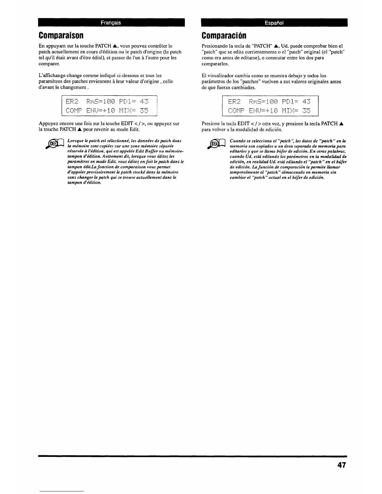 Lorsque le pafch est silectionni, les donnies de patch dans
