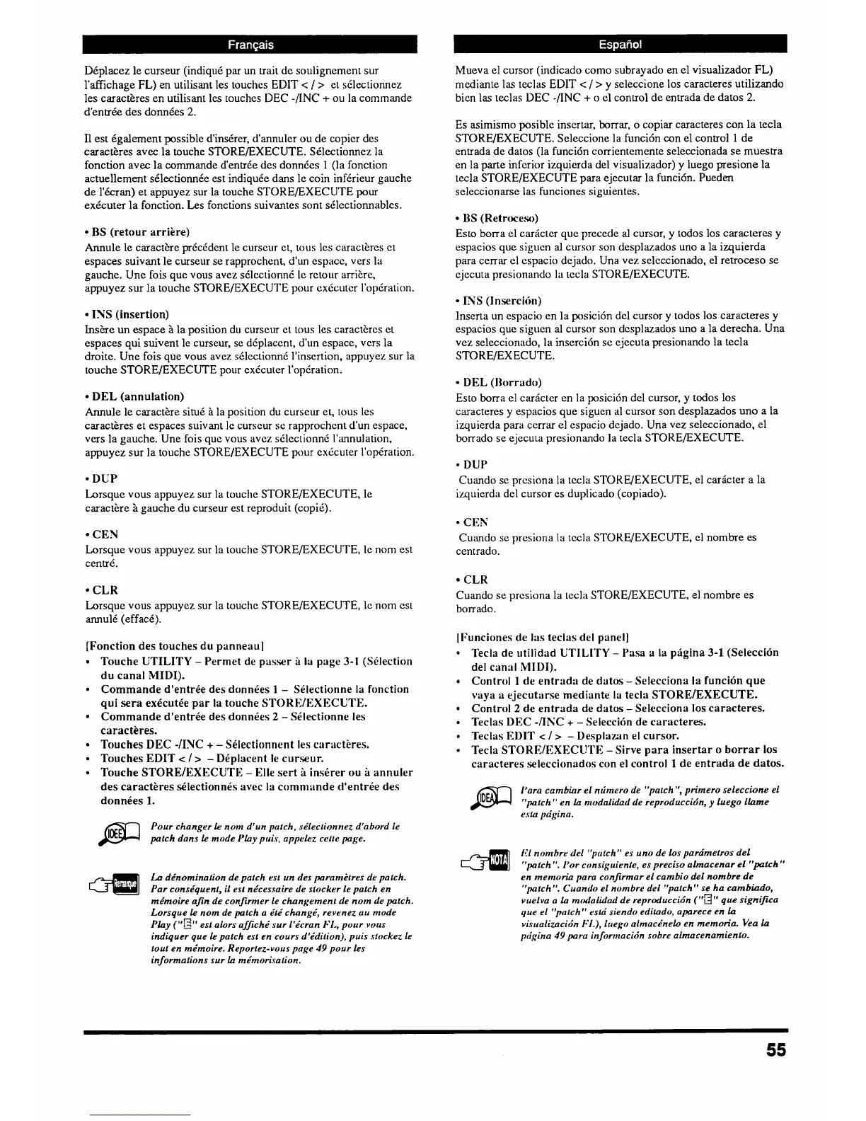 Lorsque vous appuyez sur la touchc STOKEfEXECUTE, le nom est