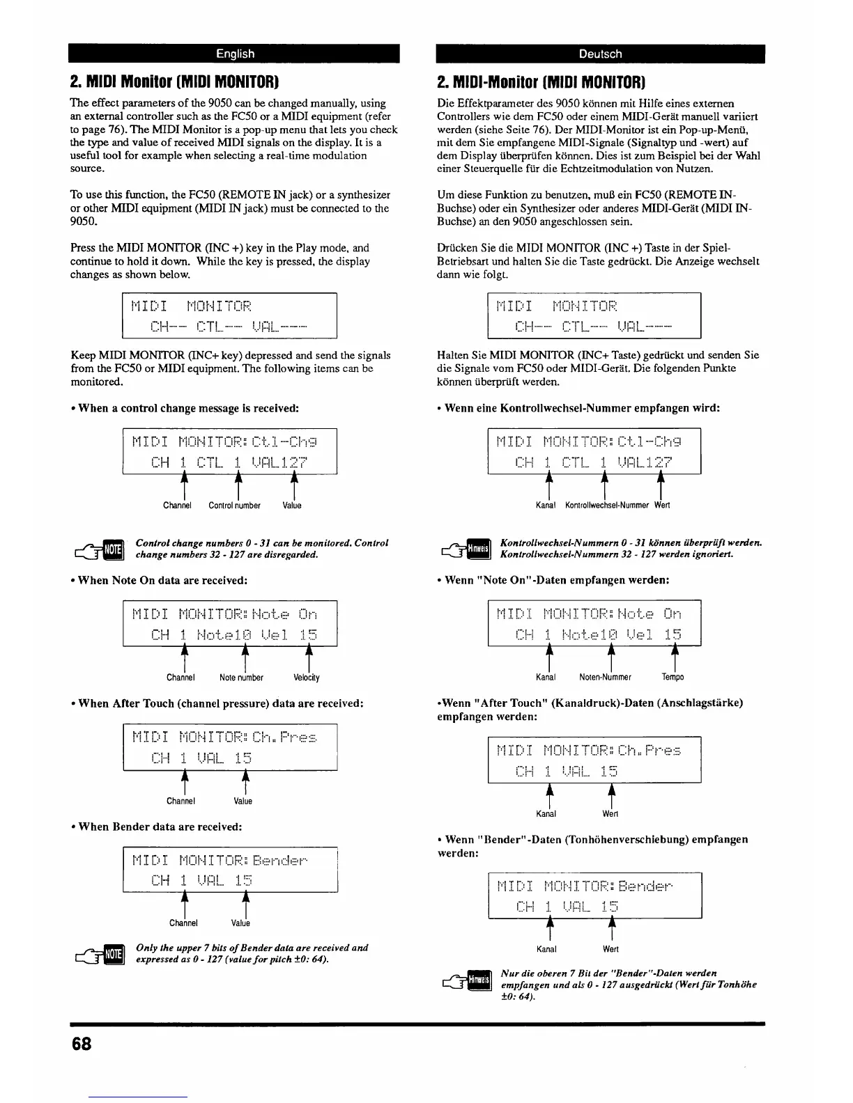 Halten Sie MIDI MONITOR (INC+ Taste) gedriickt und senden Sie