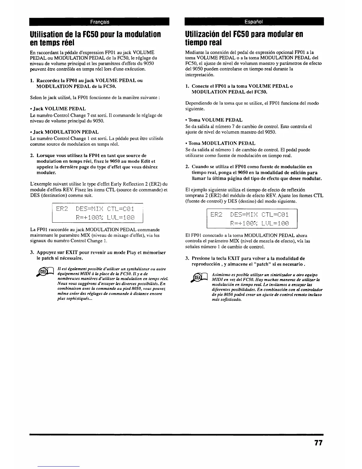 PEDAL ou MODULATION PEDAL de la FC50, le r6glage du