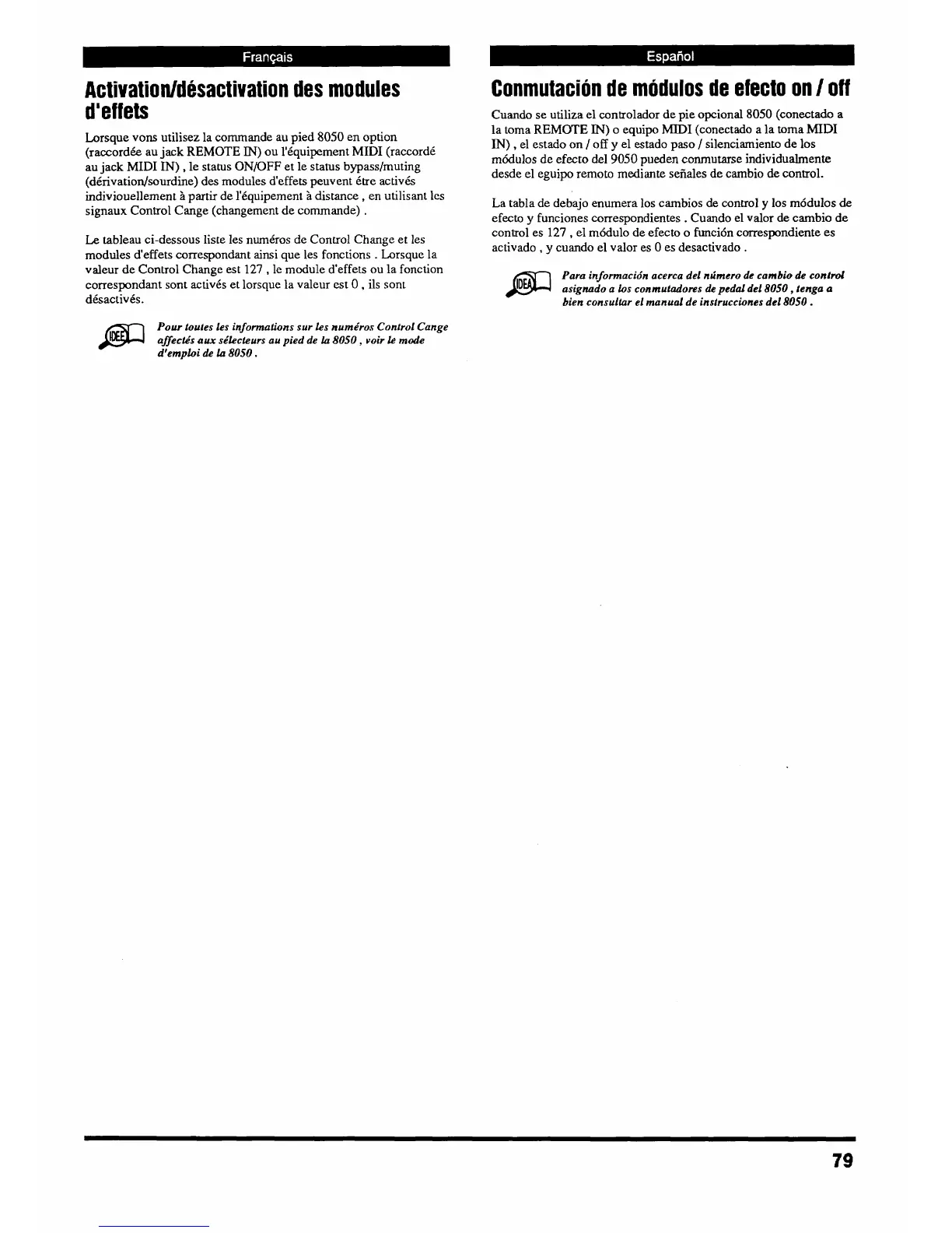 Lorsque vons utilisez la comrnande au pied 8050 en option