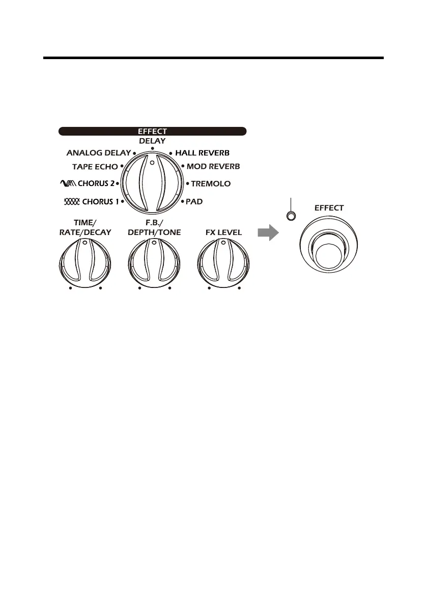 adjust the parameters of that effect. Use the EFFECT switch to turn the effect