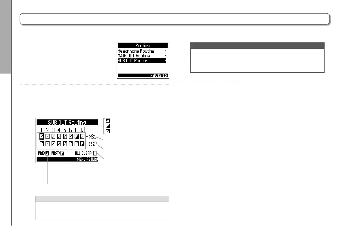5. Use e to select the track for SUB OUT 1 or SUB