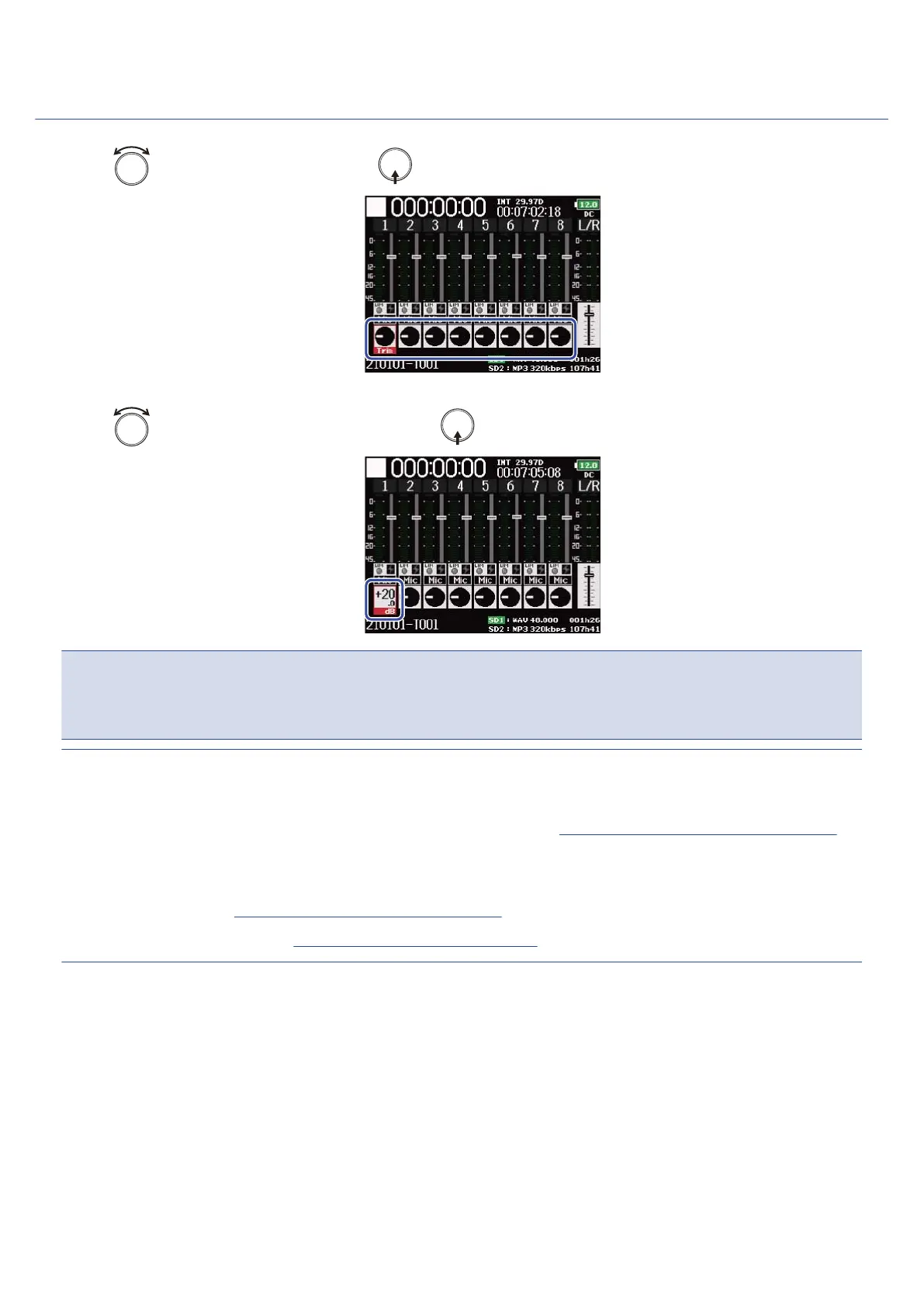 When a mic capsule is connected, the input levels of Input 1/2 cannot be adjusted with the F8n Pro. Use the