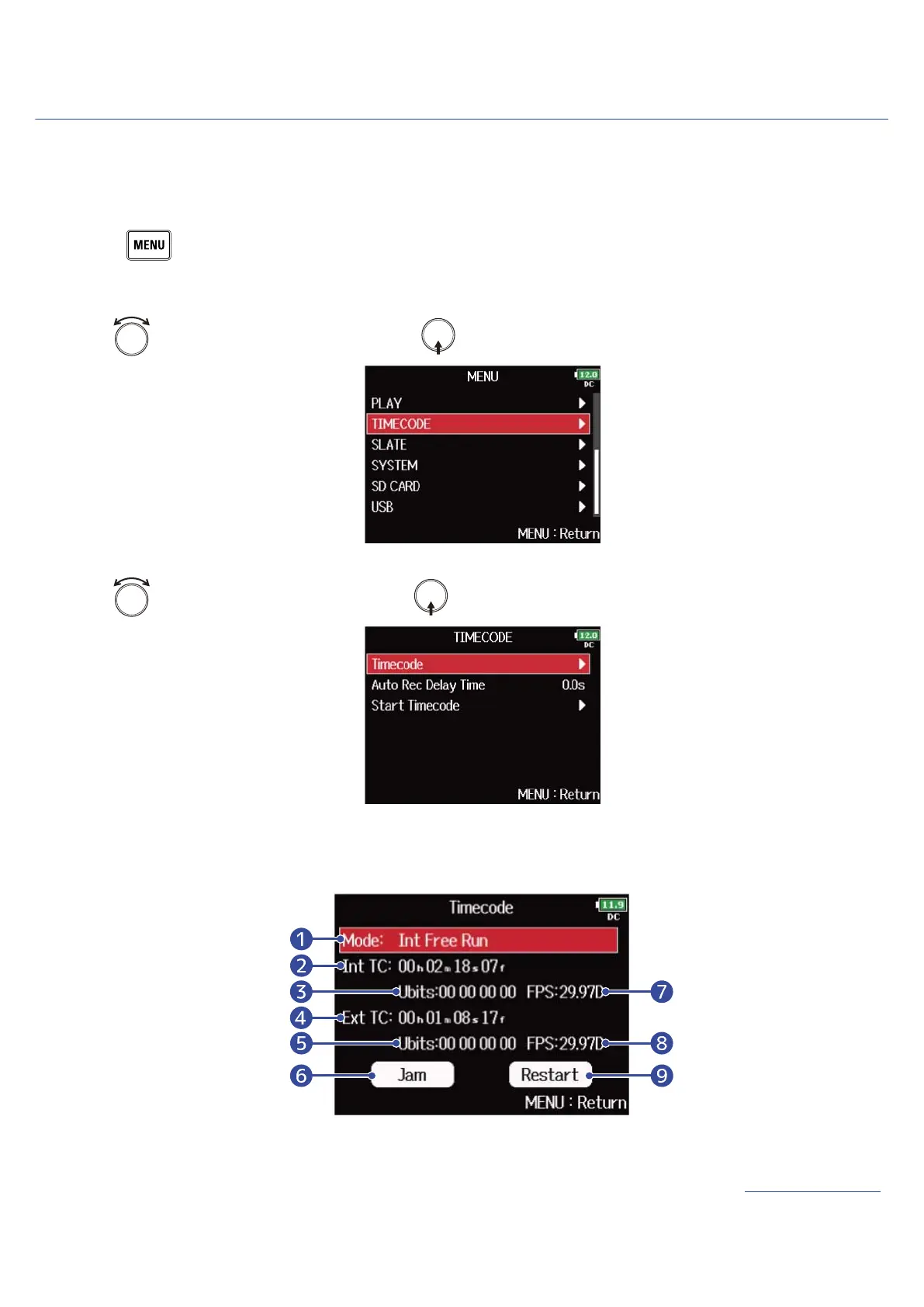 2. Use to select “TIMECODE”, and press .