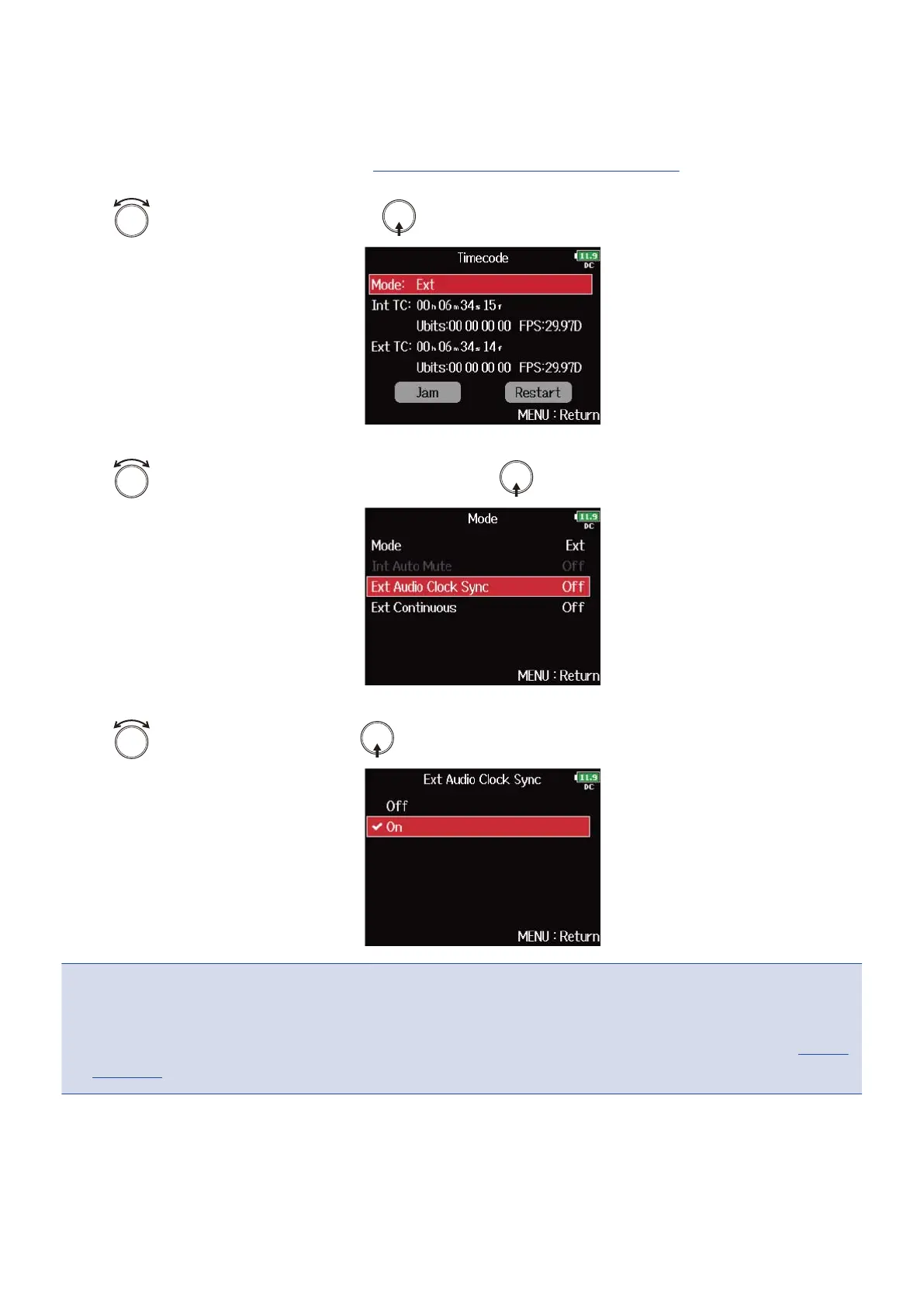 3. Use to select “Ext Audio Clock Sync”, and press .