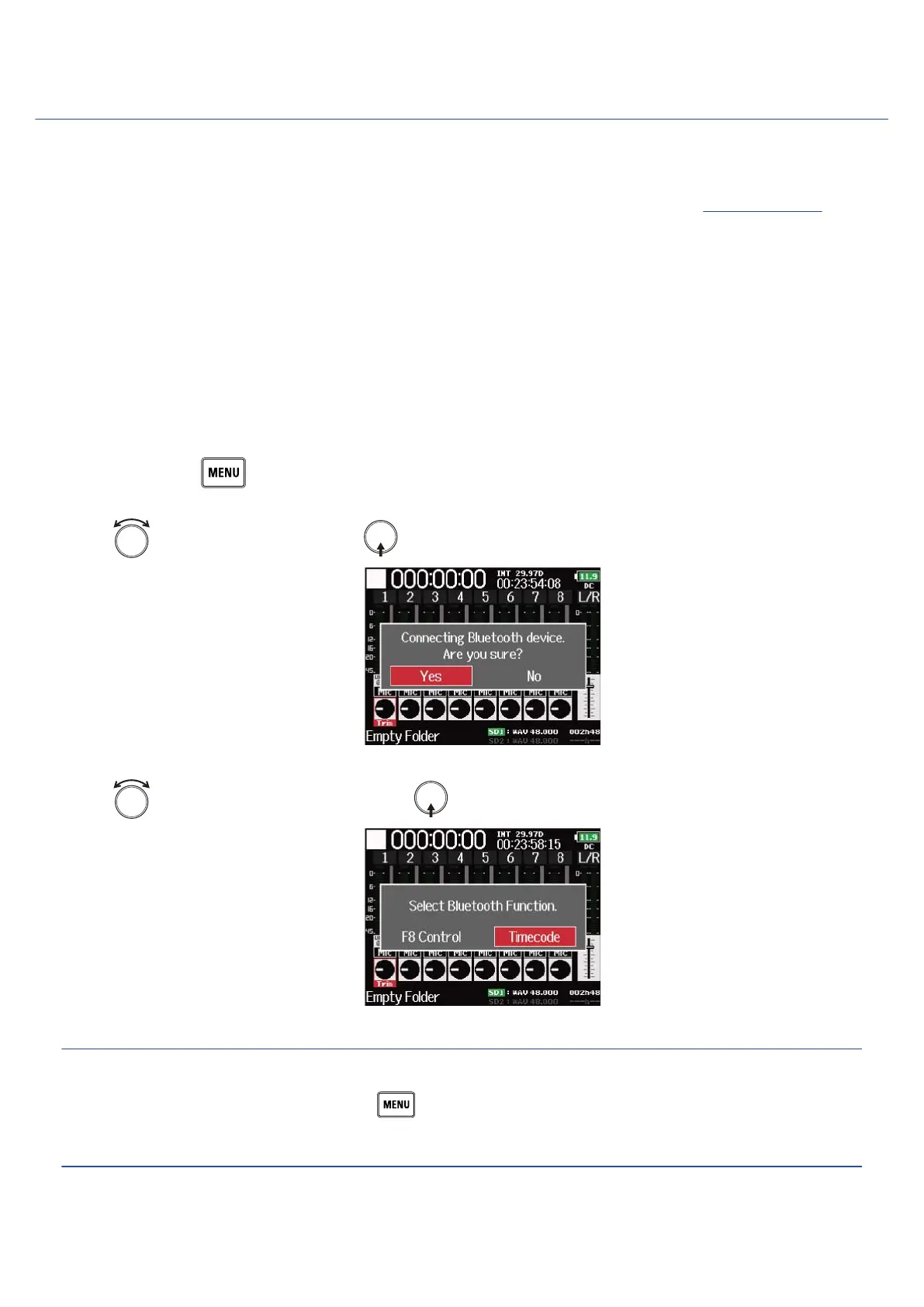 The F8n Pro can receive timecode from the connected UltraSync BLUE and record it in audio recording files.