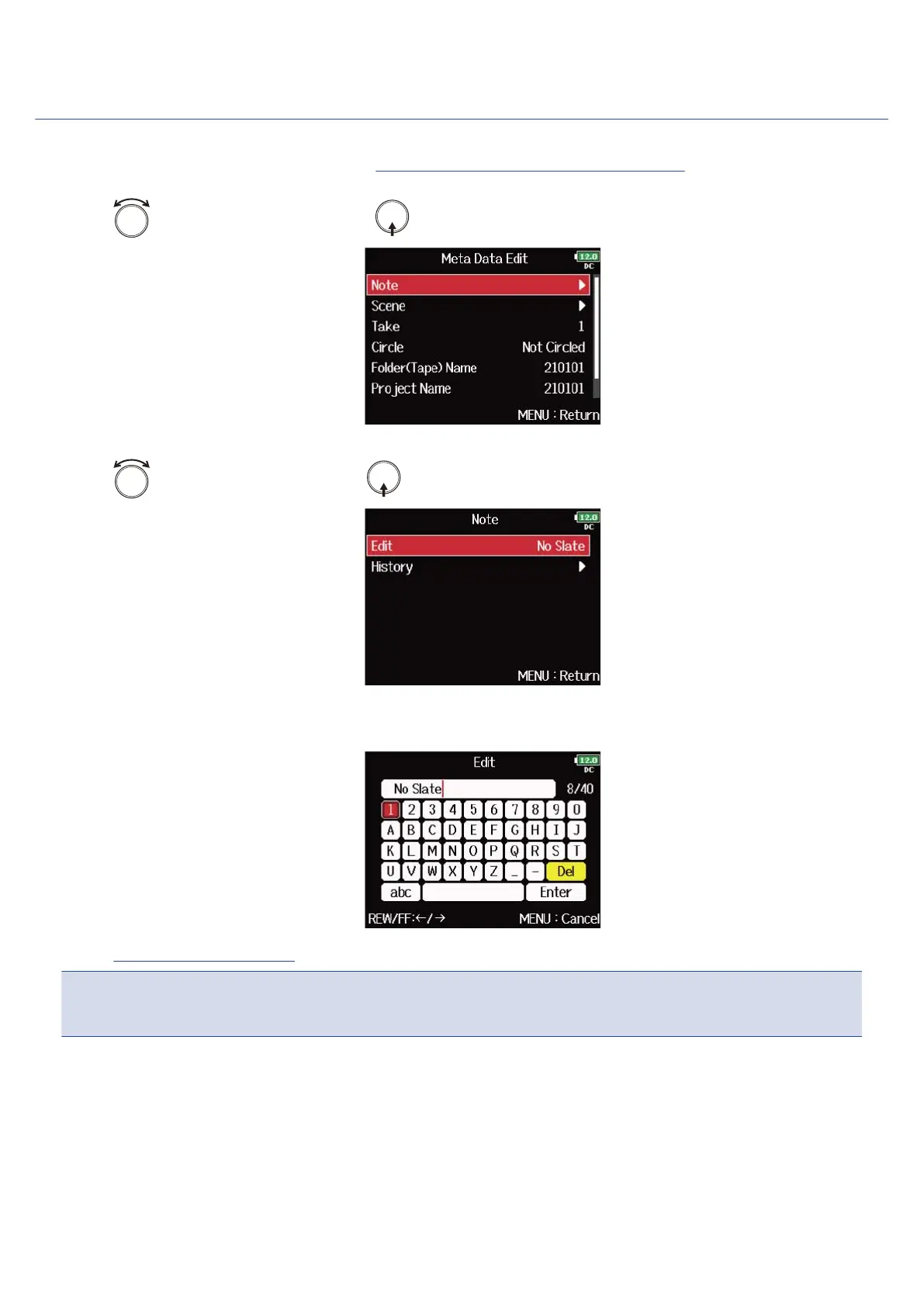 See “Character input screen” for how to input characters.