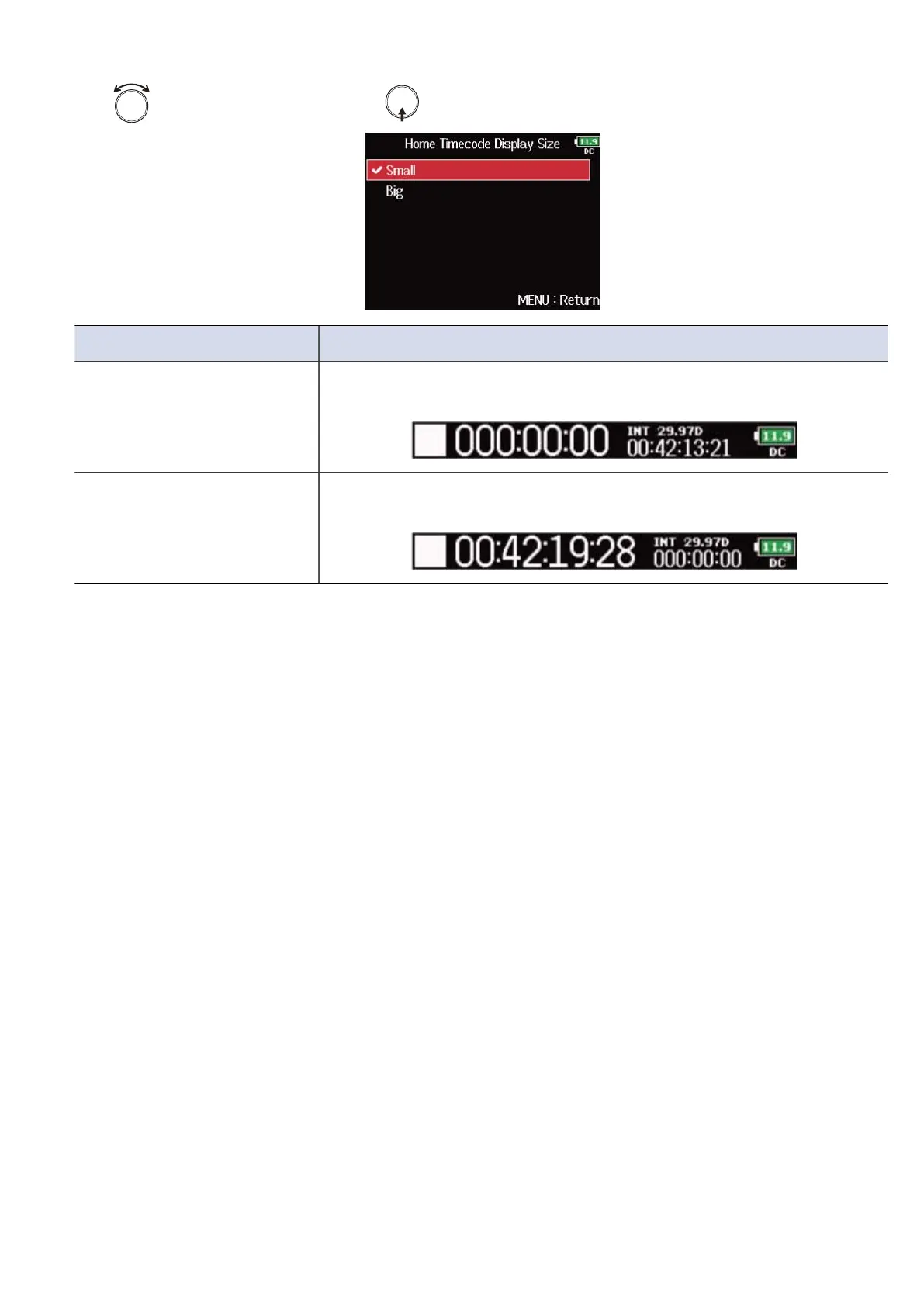 Big The timecode is large and the time counter is small.