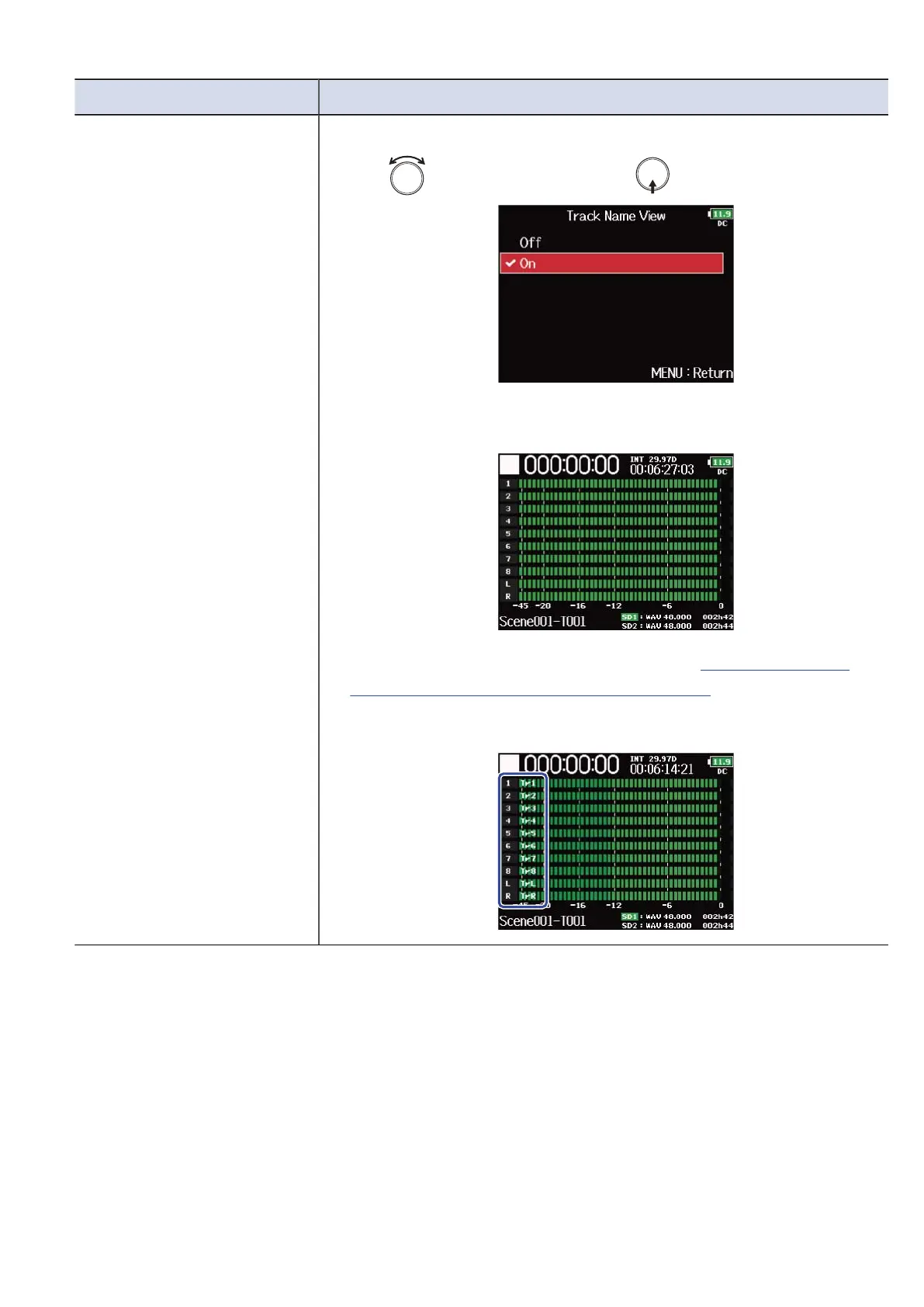 name of the next take recorded (Track Name)” are shown on the
