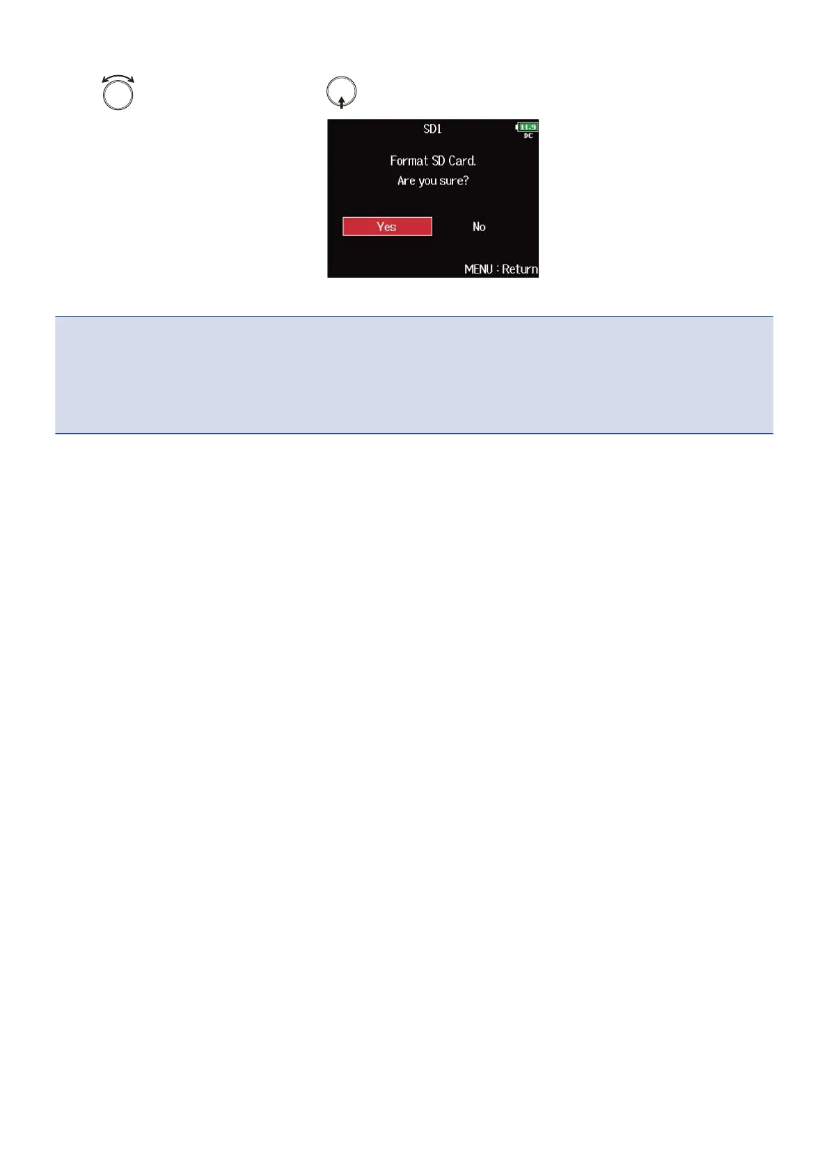 • Be aware that all data previously saved on an SD card will be deleted when it is formatted.