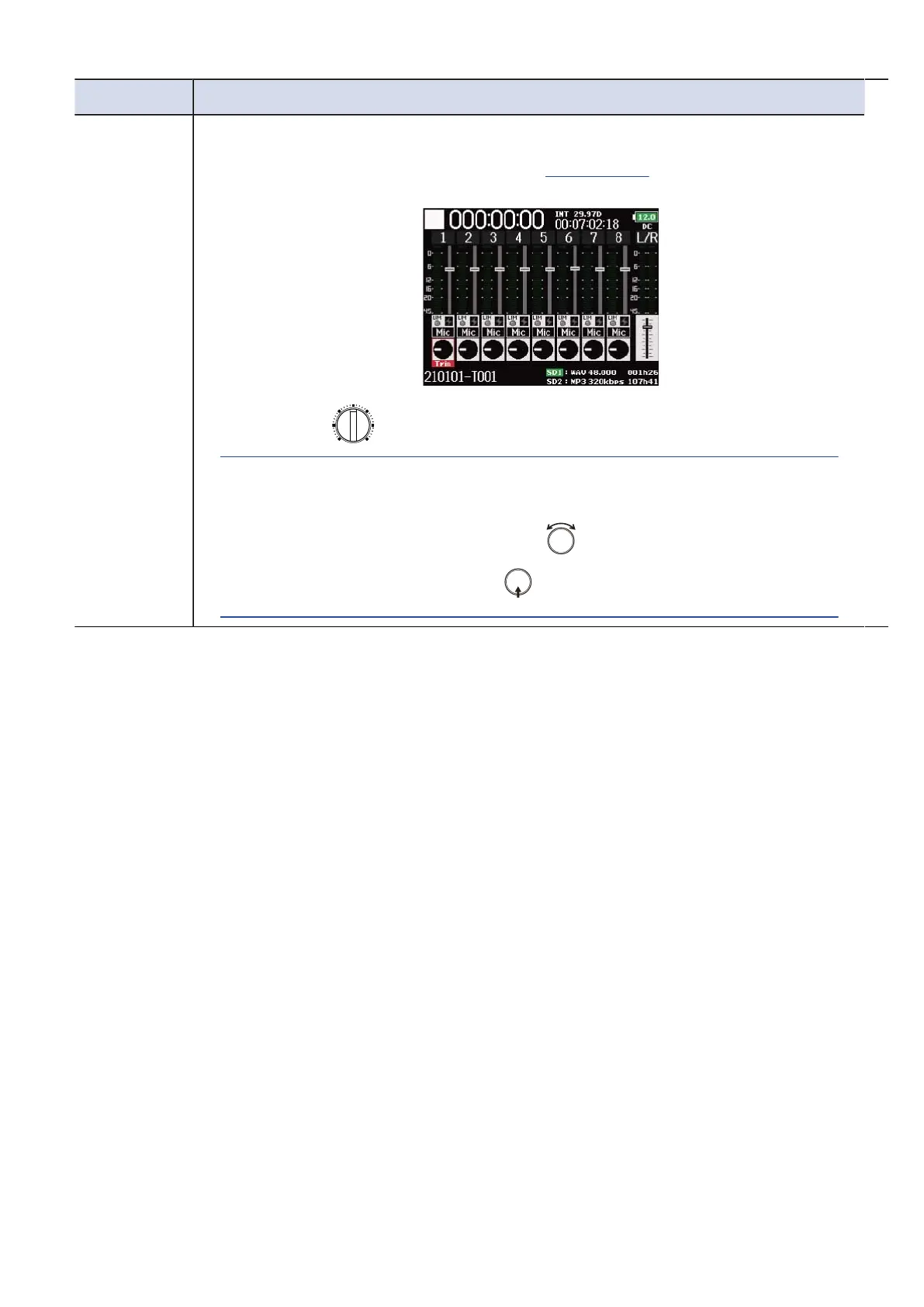 Fader The track knobs can be used to quickly adjust the fader.